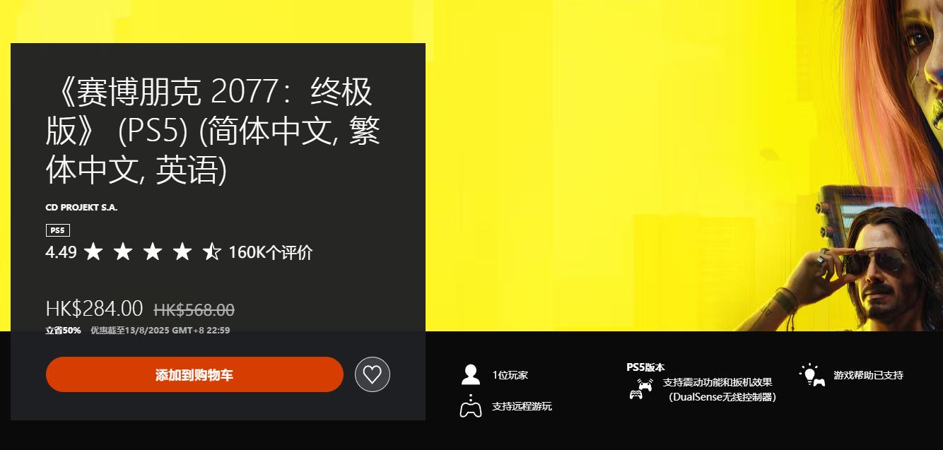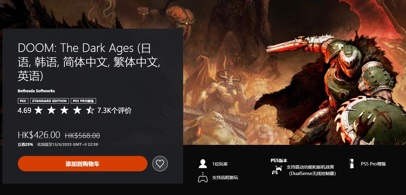 【PS商店“夏日优惠”第二波开启】PS HK商店“夏日优惠”第二波已于今日更新,热门作品包括: 《赛博朋克2077:终极版》284HKD(新史低) 《第一狂战士:卡赞》262.4HKD(首次打折) 《毁灭战士:黑暗时代》426HKD(首次打折) 《怪物猎人物语2》154HKD(新史低) 《恶魔城:Dominus Collection》109.2HKD(新史低)等 其他折扣游戏可前往商店或在我们的APP上查看,此次活动截止时间到8月13日。