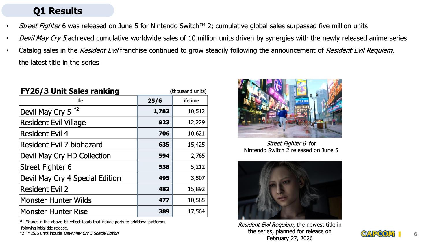 卡普空游戏销量更新,《怪物猎人:荒野》4至6月期间销量不足50万