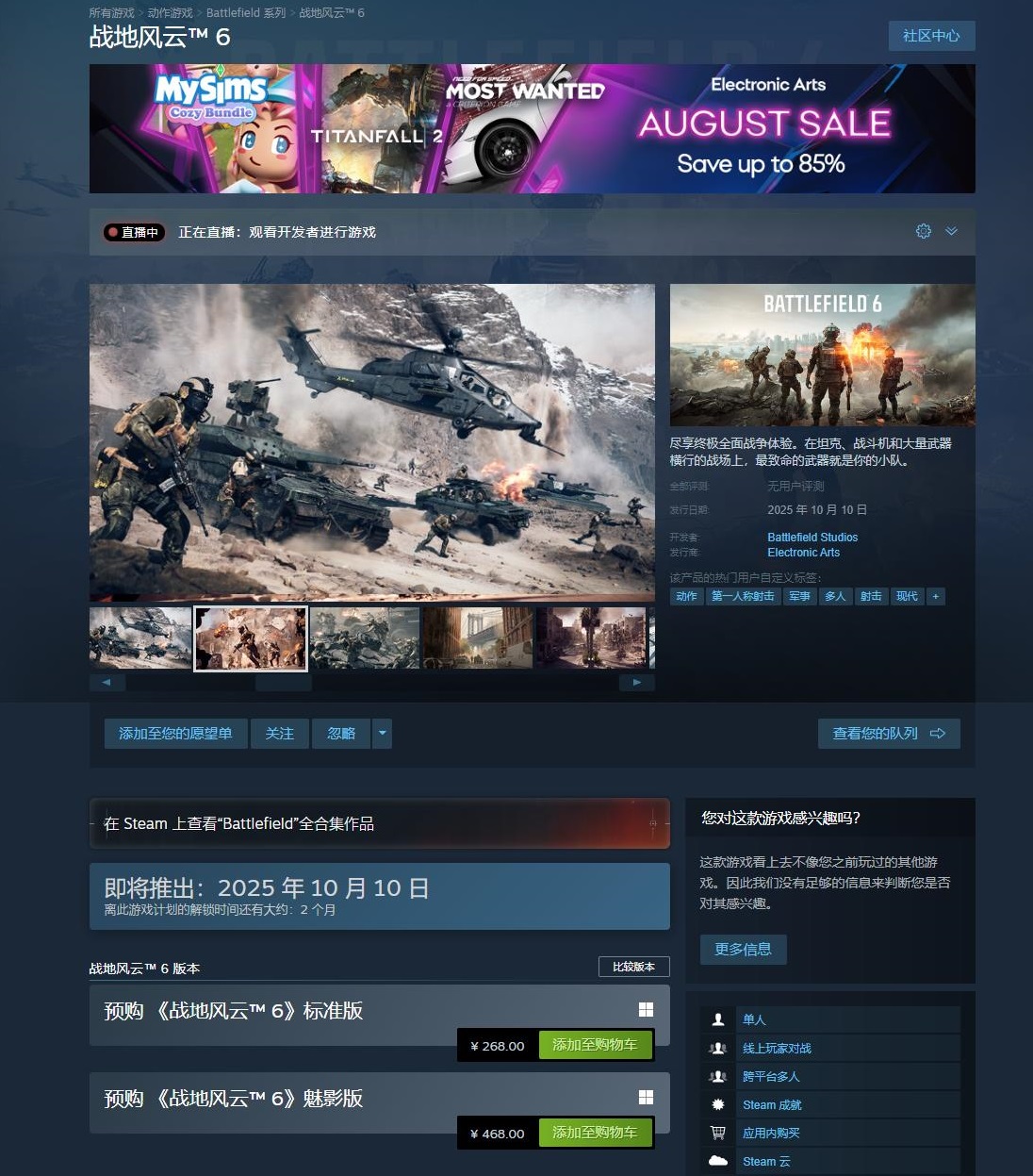 2、游戏现已开启预约,Steam国区标准版268元、魅影版468元。PS5版分别售价549/789HKD。