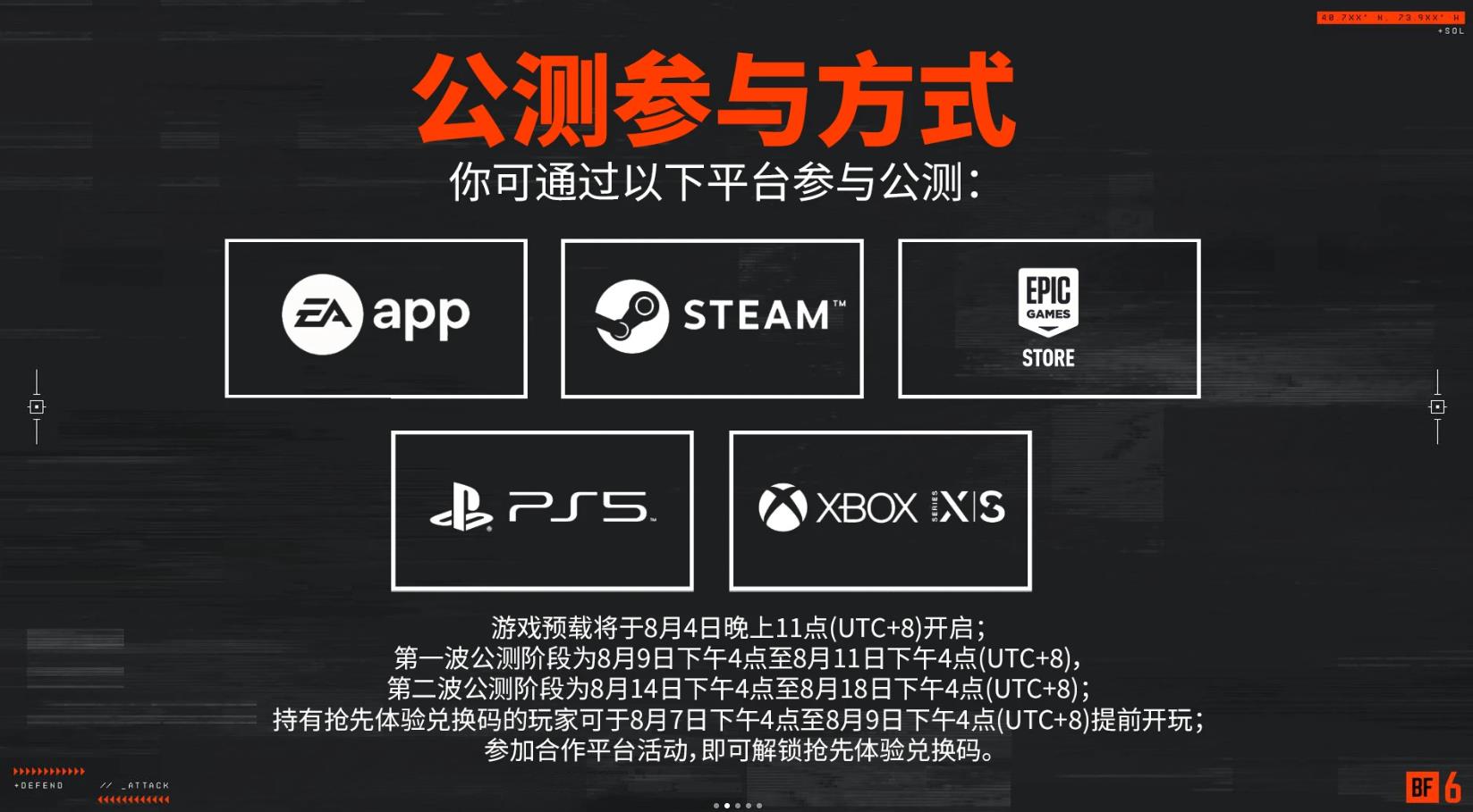3、游戏将在8月9日16:00~11日16:00,8月14日16:00~18日16:00期间进行两波公开测试。平台为PS5/Xbox Series/Steam/Epic。