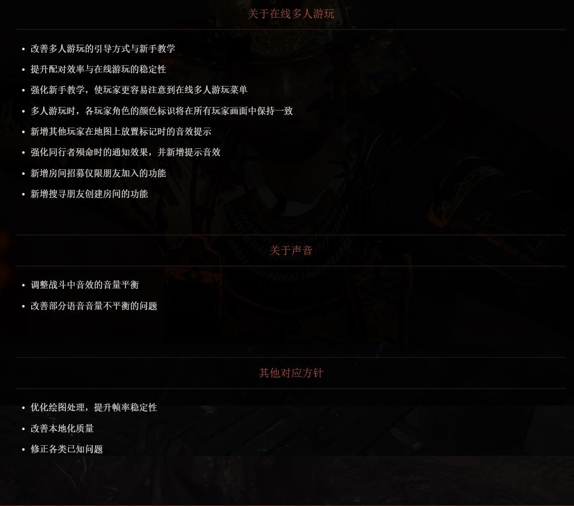 针对玩家们的反馈,开发团队表示会在正式版中进行改善,具体说明详见附图。黑暗战国动作RPG《仁王3》将在2026年初登录PS5和Steam,游戏支持中文。