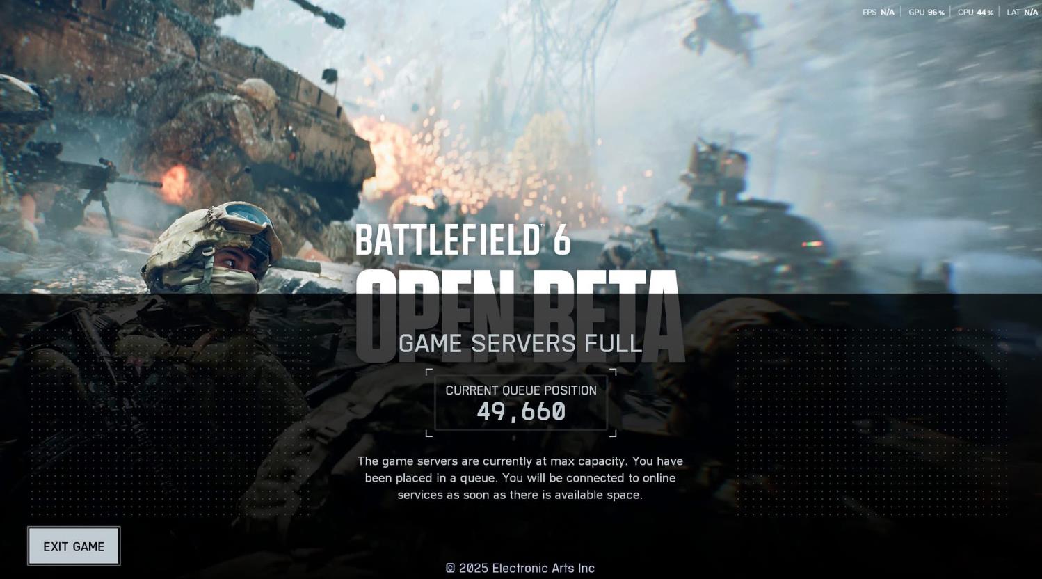 【《战地6》公测火爆异常,服务器排队人数近5万】《战地6》公开测试即将于8月9-10日和14-17日开启(抢先体验今日下午4点开始)。尽管测试尚未启动,但有用户反馈在预载期间尝试登陆时就需要服务器排队,甚至出现了排队人数高达49660人的情况。值得一提的是,根据上线时间和服务器地点的不同等待时间或有所差异。媒体Dualshockers测试称目前服务器过载主要集中在北美地区,但也不排除正式开测时更多玩家涌入挤爆服务器的可能。《战地6》将于2025年10月10日登陆PS5、PC和Xbox Series平台。