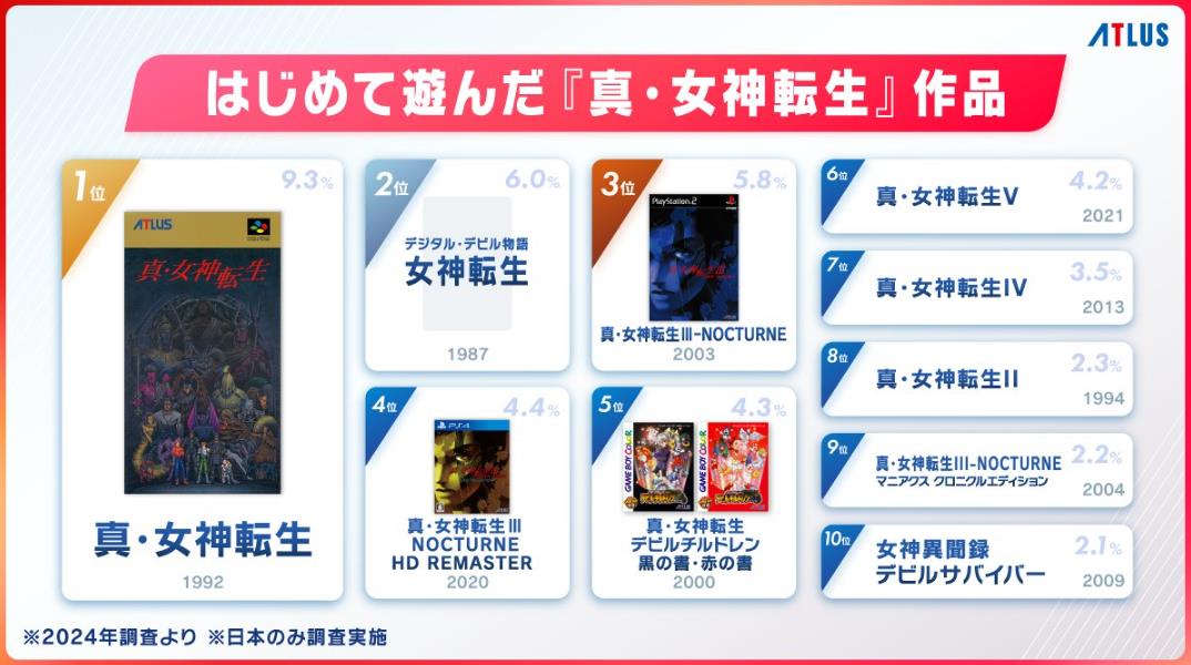 3、关于《女神异闻录》系列的入坑作:大多数日本玩家是1996发售的初代《女神异闻录》,北美地区则是《女神异闻录5》(详见附图)。