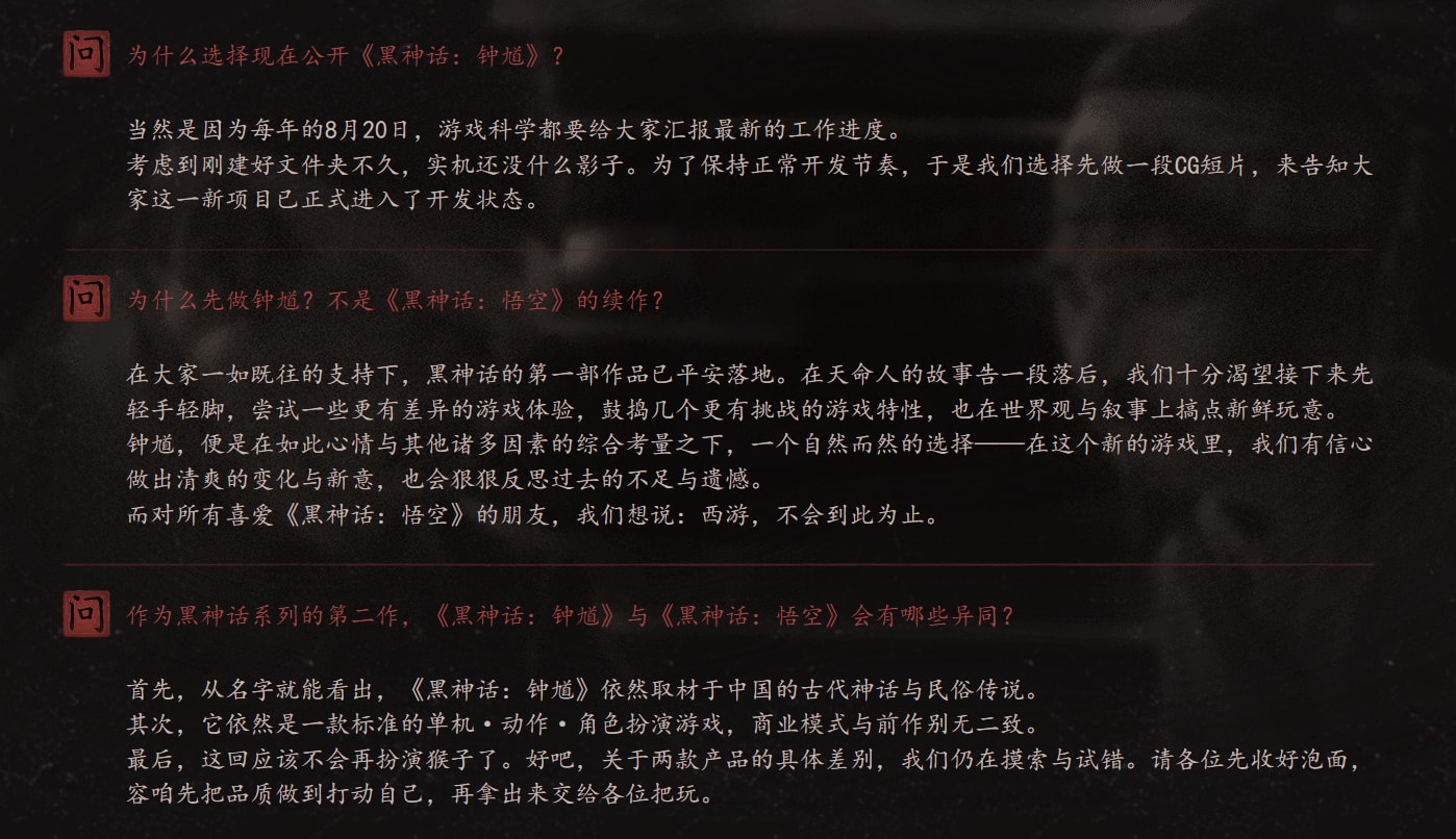 《黑神话:钟馗》官方常见问题解答:仍是一款单机动作RPG