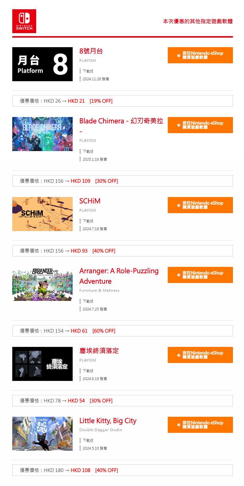 【任天堂“Switch独立游戏优惠”活动进行中】任天堂HK商店近日开启了“Switch独立游戏优惠”活动,时间截至2025年9月1日23:59。游戏包括(以下均为折后价):