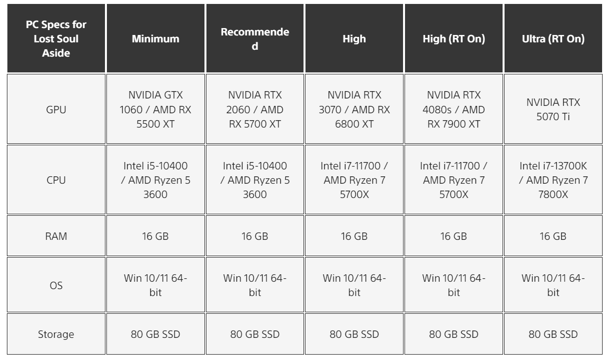 《失落之魂》PC详细配置公布:最低要求i5-10400+GTX1060