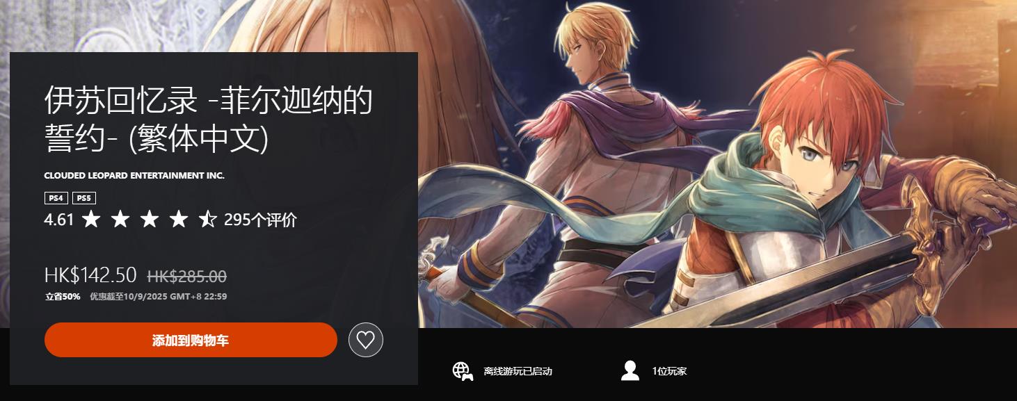 《伊苏回忆录:菲尔迦纳的誓约》142.5HKD(新史低)