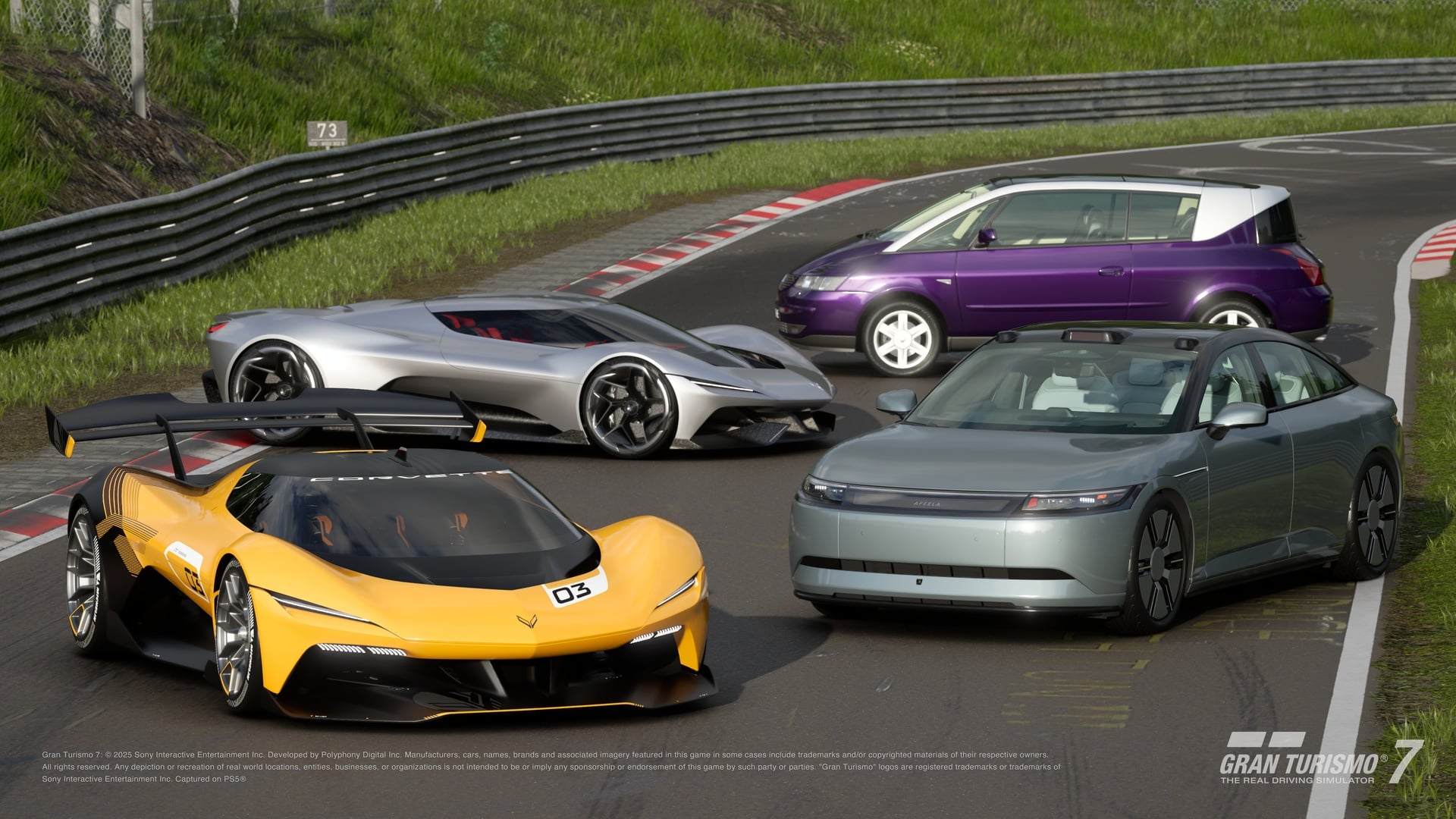 1、追加4台新车:AFEELA 1 '26、Chevrolet Corvette CX Concept '25、Chevrolet Corvette CX.R Vision Gran Turismo Concept、Renault Avantime 3.0 V6 24V '02。