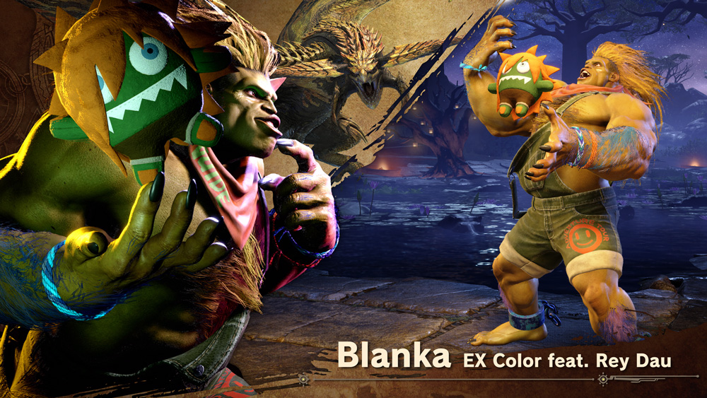 2、以《怪物猎人:荒野》怪物为主题的“布兰卡”“豪鬼”“曼侬”“嘉米”“肯”共5种EX颜色会在游戏内商店推出。