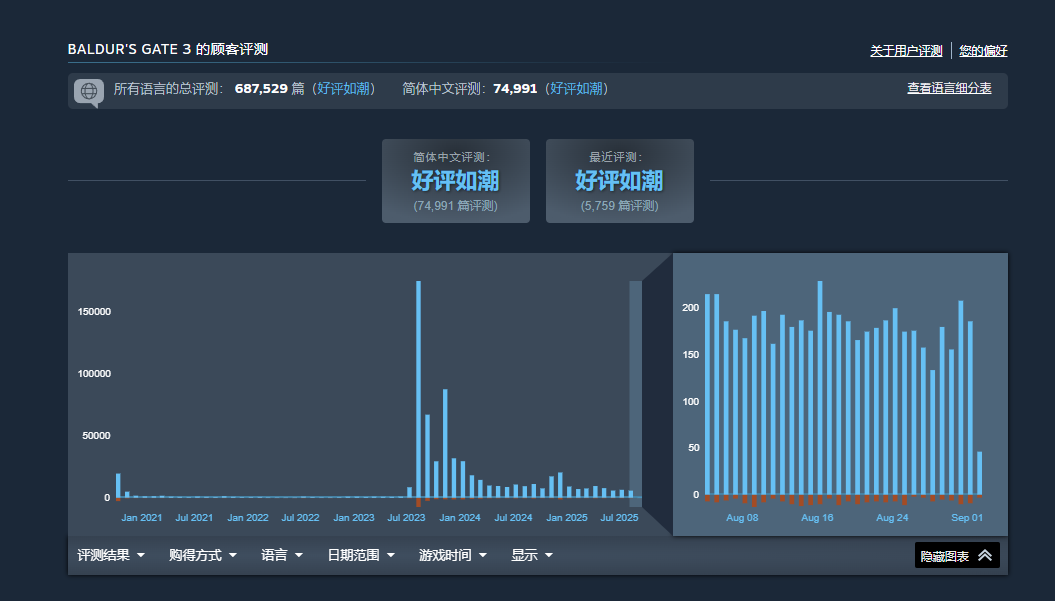【《博德之门3》Steam上新史低价223.5元促销中】由拉瑞安工作室所带来的角色扮演游戏《博德之门3》目前正在Steam上75折促销中。截至9月9日,玩家可以新史低价223.5元的价格入手这款人气作品。于2023年发售的《博德之门3》是首个拿下TGA/GDC/DICE/金摇杆/BAFTA年度奖项的大满贯游戏。目前它在Steam平台上已有687529篇评测,玩家好评率96%,整体为“好评如潮”。