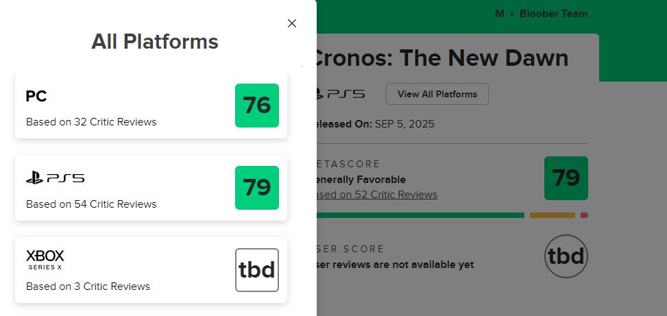 《时间旅者:重生曙光》MC媒体均分79,获IGN7分,GS8分评价