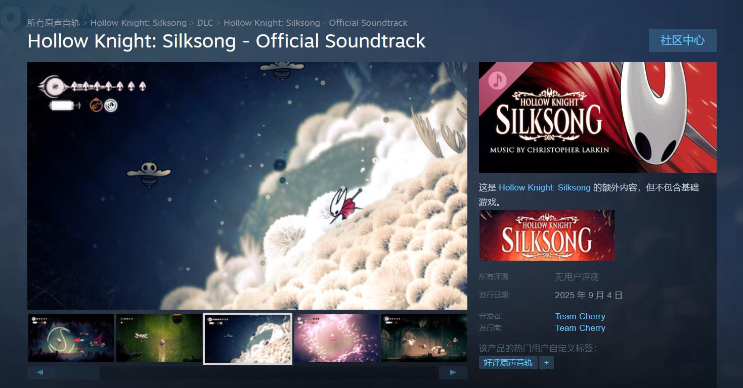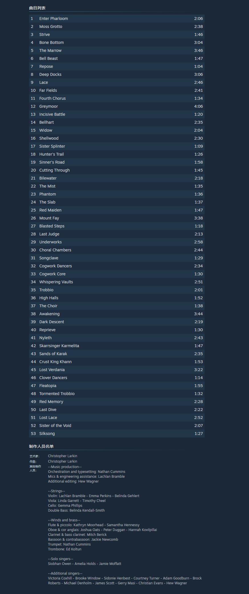 《空洞骑士:丝之歌》原声带上架Steam,共53首乐曲