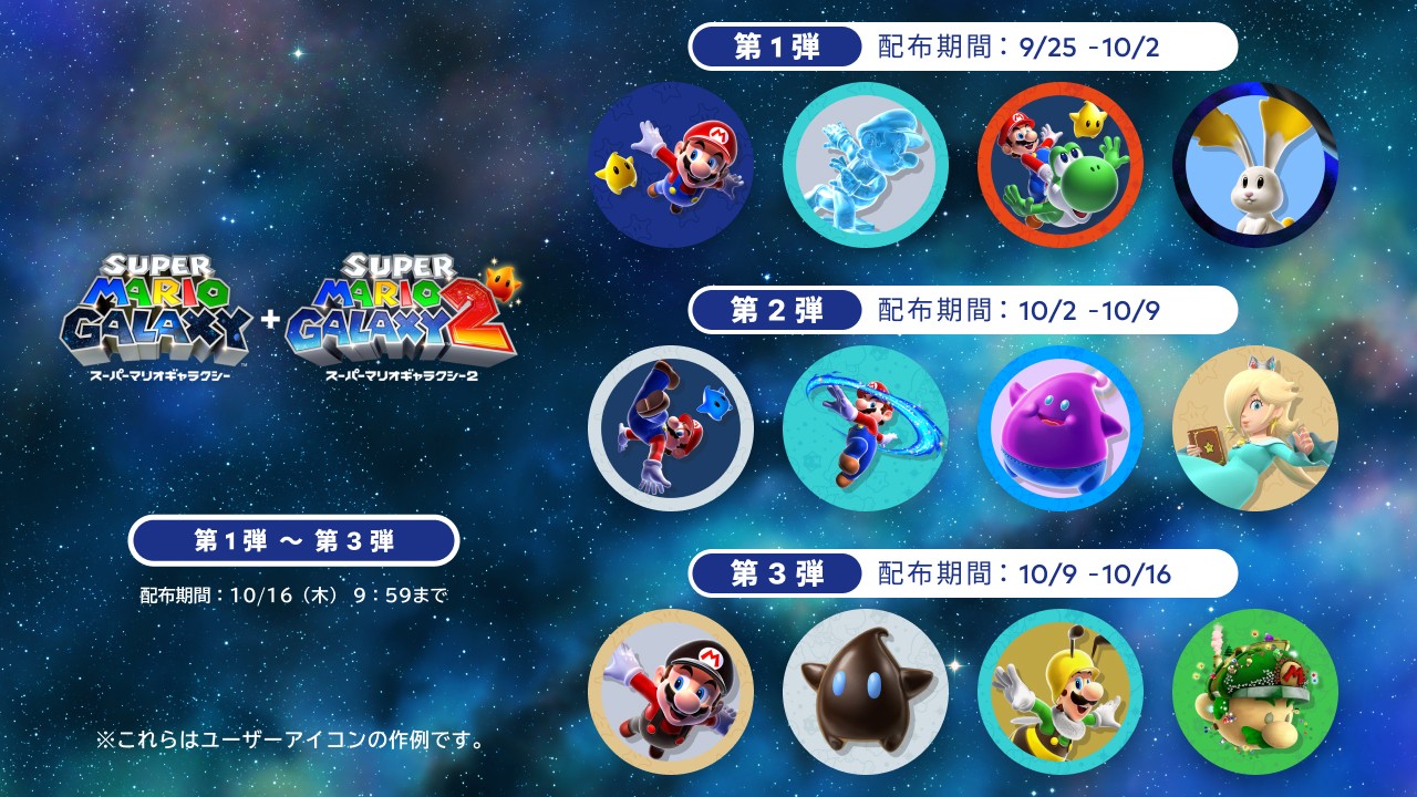 【《超级马力欧银河1+2》NSO头像将于9月25日上线】任天堂在近期的直面会上公布了《超级马力欧银河1+2》。本作将于10月2日登录NS,NS2提供免费升级。玩家除可购买合集外,也能单独购买其中一作。《超级马力欧银河1+2》的Nintendo Switch Online头像将于9月25日上线,该主题头像将分三期推出,会员玩家可使用白金点数兑换。