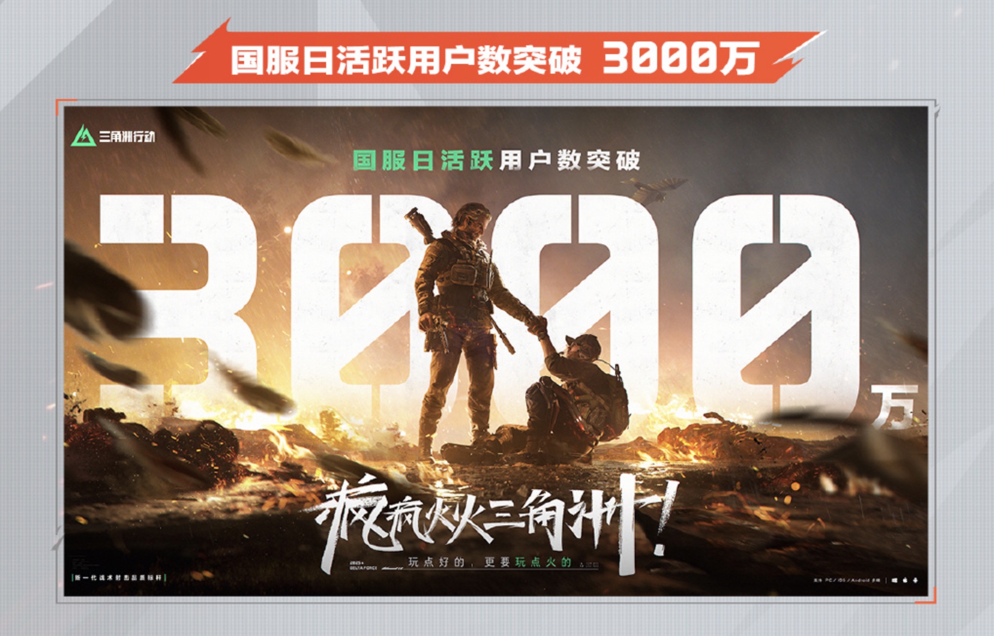 【《三角洲行动》将与《合金装备 食蛇者》开启联动,游戏日活破3000万】在《三角洲行动》一周年庆典活动上,官方宣布游戏将与《合金装备Δ:食蛇者》展开联动,届时将推出专属联动传说外观“无名-裸蛇”。此外,游戏国服的日活已突破3000万人次,更多详细内容将在后续公布。
