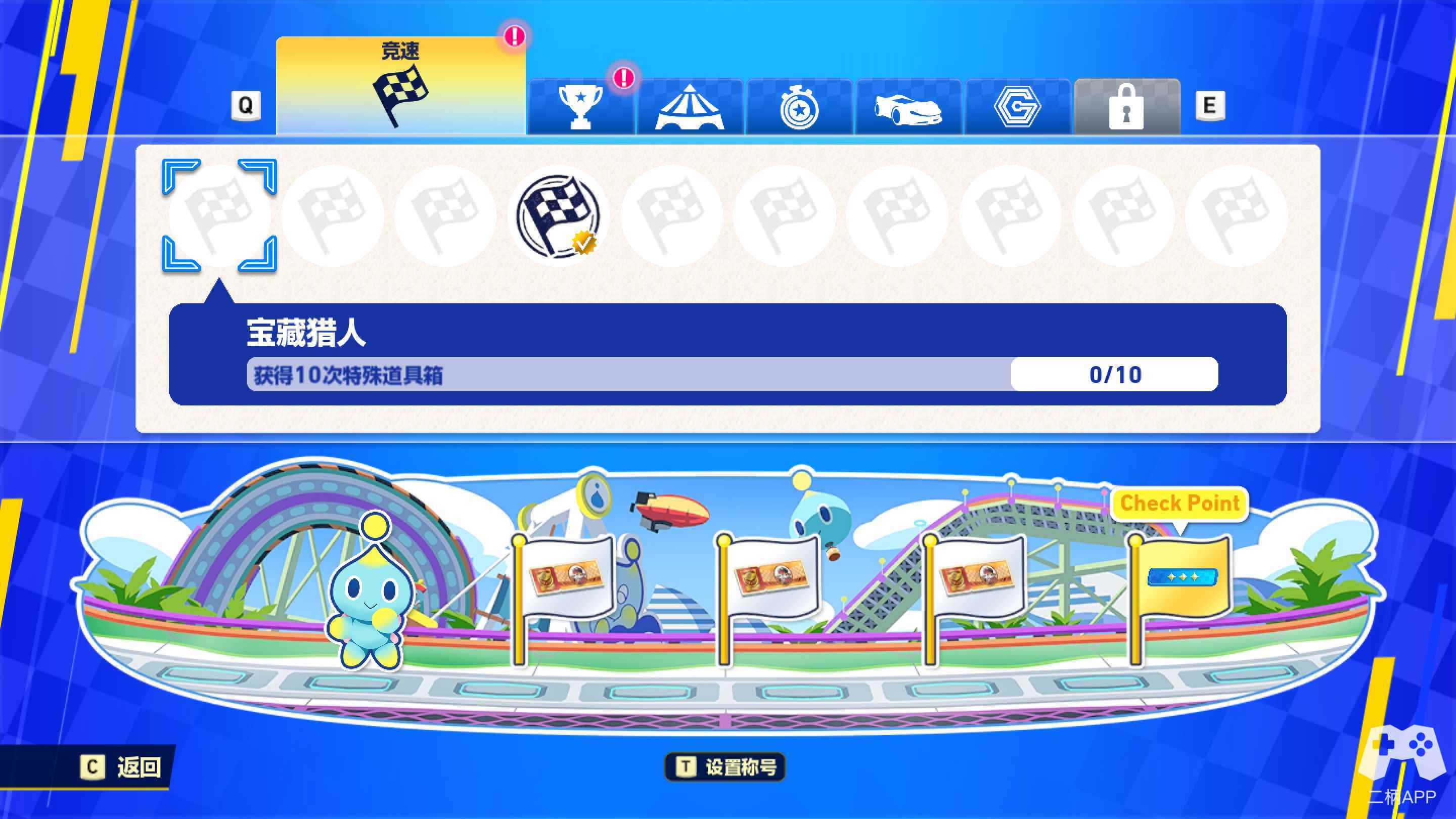 “索尼克速度”就适合想要挑战自身的玩家,除此之外还需要在众多对手中挑选一位劲敌,打败劲敌即可获得相应的奖杯,玩家需要连续挑战四场拥有不同的赛道的比赛,每场比赛都会累积积分,决赛后拥有最多积分的玩家可以赢得大奖赛的胜利。
