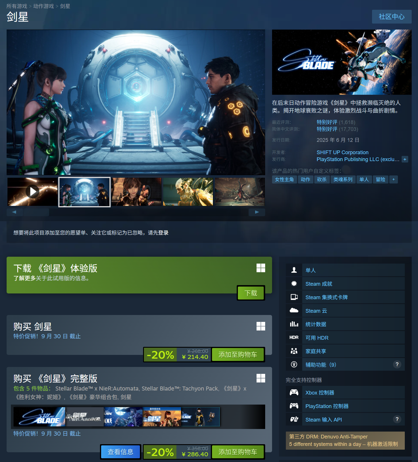 【首次特惠!《剑星》8折来袭,《胜利女神》同步联动送专属时装】双厨狂喜!备受玩家喜爱的《剑星》终于在Steam迎来首次折扣!即日起游戏开启8折特惠,折后仅214.4元即可入手。同时,Shift Up工作室的另一款游戏《胜利女神:新的希望》也将同步开启与《剑星》的联动。来自《剑星》的伊芙、渡鸦与百合三位角色将跨越次元,加入《胜利女神》的世界,在专属联动剧情活动“星之追忆者”中与玩家相遇。拥有《剑星》完整版的玩家还可在《胜利女神》中免费获取“红莲 - 狂飙车手”时装,参与活动更可免费解锁角色“百合”,以及伊芙与渡鸦的联动精美时装!