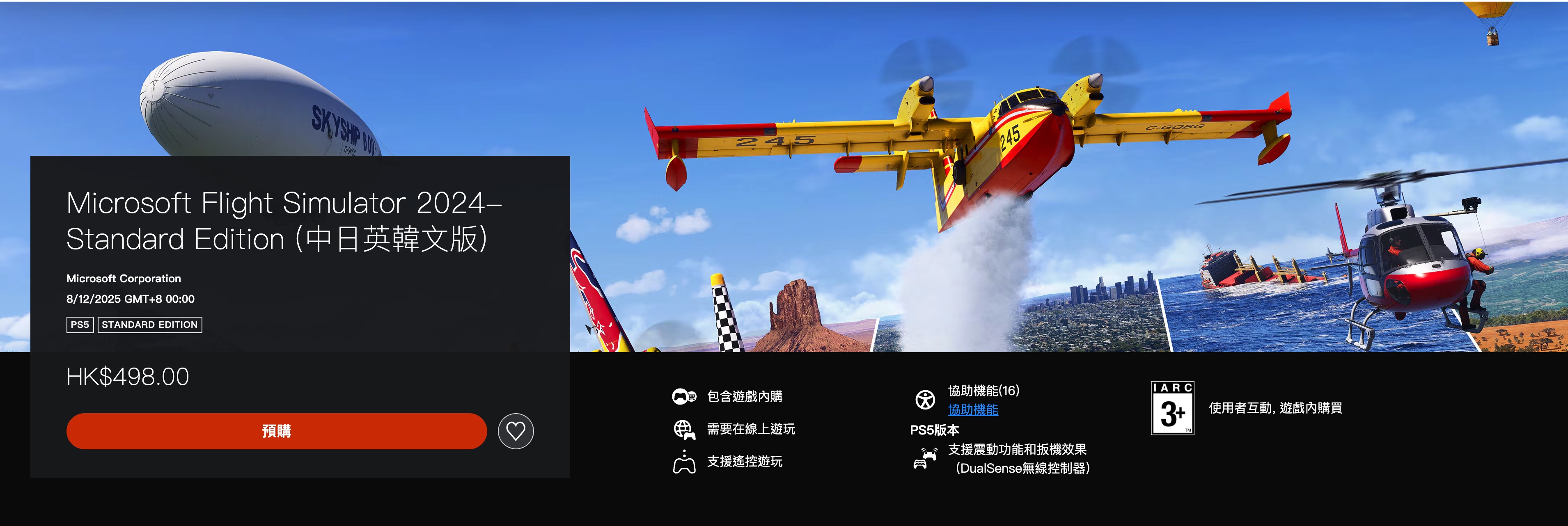 PS5版将延续PC和Xbox Series X/S版本的高度还原世界、飞行航线与飞机模型,包含多达125架各类飞机,包括公务机、轻型飞机、飞艇、热气球、旋翼机及战斗机。此外,PS5版本将针对DualSense手柄提供多项独占功能:自适应扳机可根据速度和地面类型反馈不同阻力,手柄扬声器可播放空中交通管制通讯,同时还将充分利用光条、陀螺仪和触控板功能。PS VR2玩家则可通过虚拟现实模式体验完整游戏内容,为飞行模拟爱好者带来完全沉浸感。