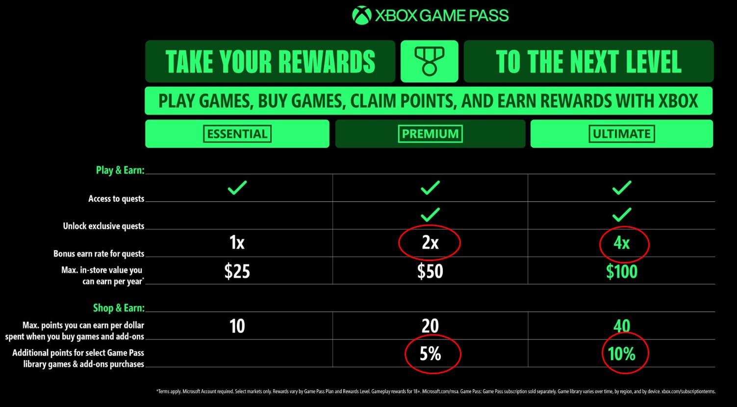 微软在声明中表示:“这项优惠并非针对任何一款游戏,而是覆盖所有作品和拓展内容。Ultimate和Premium订阅用户在购买Game Pass库中的指定游戏和DLC时,将分别获得10%和5%的积分返还,而非购买折扣。Ultimate用户购买部分内容时仍可享受20%的优惠。此外,Ultimate和Premium玩家购买游戏/DLC时积分也会分别获得4倍和2倍的加成。”
