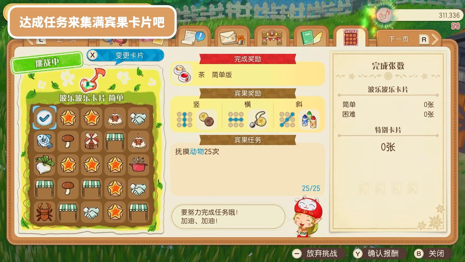 【《牧场物语 来吧!风之繁华集市》免费更新追加“宾果玩法”】Marvelous今日为《牧场物语 来吧!风之繁华集市》推送了免费更新(Ver.1.1.0)。其中加入了全新玩法“波乐波乐宾果”,只需完成宾果卡上的任务,即可获得对牧场生活有帮助的奖励道具。完成特别卡片任务还有机会解锁全新服装与滑翔伞,官方表示会在未来的更新中陆续推出更多特别卡片。此外,这次更新还包含了多项修正与调整,以提供更舒适的游戏体验。温馨生活游戏《牧场物语 来吧!风之繁华集市》现已登录NS2、NS、Steam,游戏支持中文。