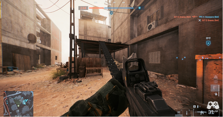 在核心部分求稳的前提下,这次的战役也加了些新设定。首先,你不会再独自冲锋陷阵。开发组将多人模式中的“四人小队机制”融入到单机战役里,你可以呼叫NPC队友执行标记、掩护或投掷烟雾等指令。