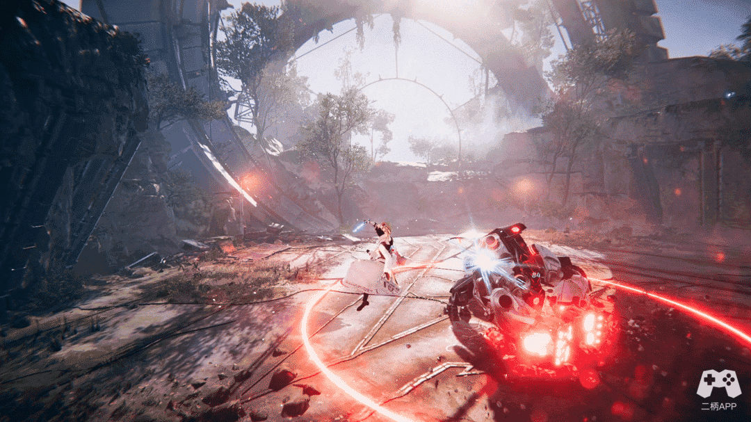 在此次20分钟的试玩中,我们体验了标准武器刀和重型武器长刀。从目前的上手感觉来看,游戏的战斗手感不错。尽管砍击的目标是机械敌人,但操作起来依然非常顺畅且富有打击感,高速战斗体验让人感到相当爽快。