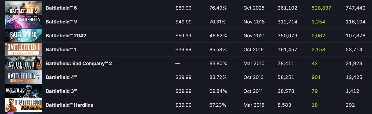 《战地6》Steam上获玩家“多半好评”,峰值74.7万创造新纪录