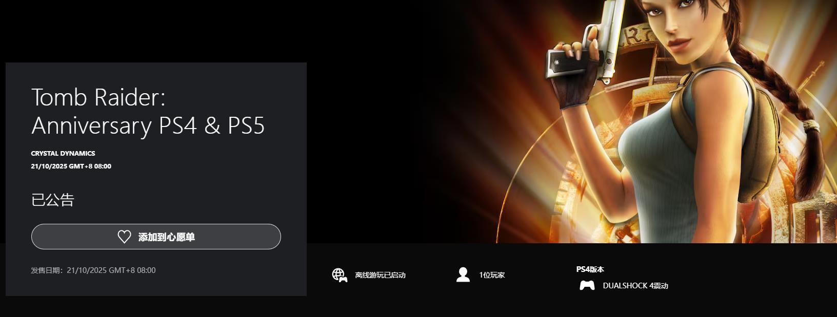 【《古墓丽影:周年纪念版》或也将在本月加入PS+游戏库】SIE在上月的State of Play透露了《古墓丽影:周年纪念版》将加入PS+3档经典目录的消息。然而这款作品在昨晚官方公布的10月入库游戏名单中并未出现。值得注意的是,根据PS商店中的信息显示,《古墓丽影:周年纪念版》的发售日期为10月21日,这与本月新增游戏的上线时间一致。虽然现阶段还没有官方消息公布,但不排除该作会在10月入库的可能。