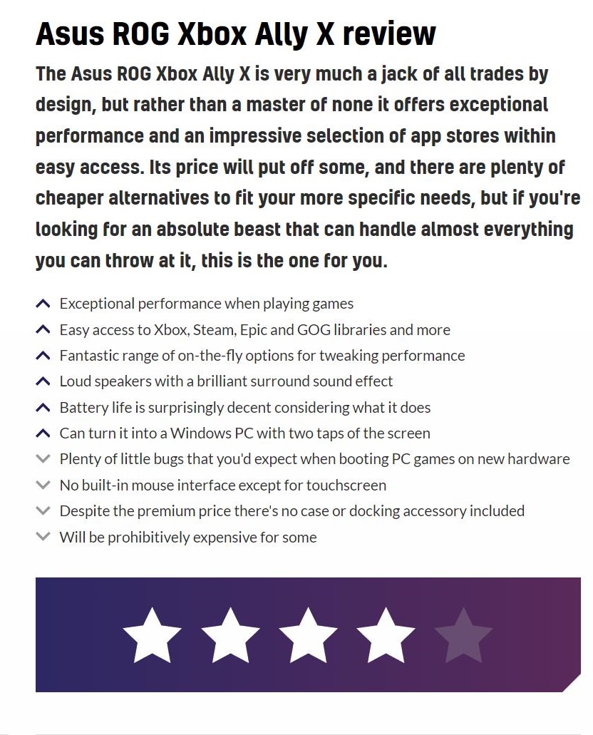 【“ROG Xbox掌机X”海外媒体评分汇总】由华硕ROG和微软Xbox合作推出的新款游戏设备“ROG Xbox掌机X”全球媒体评测现已解禁。我们在昨晚也第一时间为大家带来了它的评测报告*,目前部分海外媒体的测评分数如下(采用MC的满分10分制):