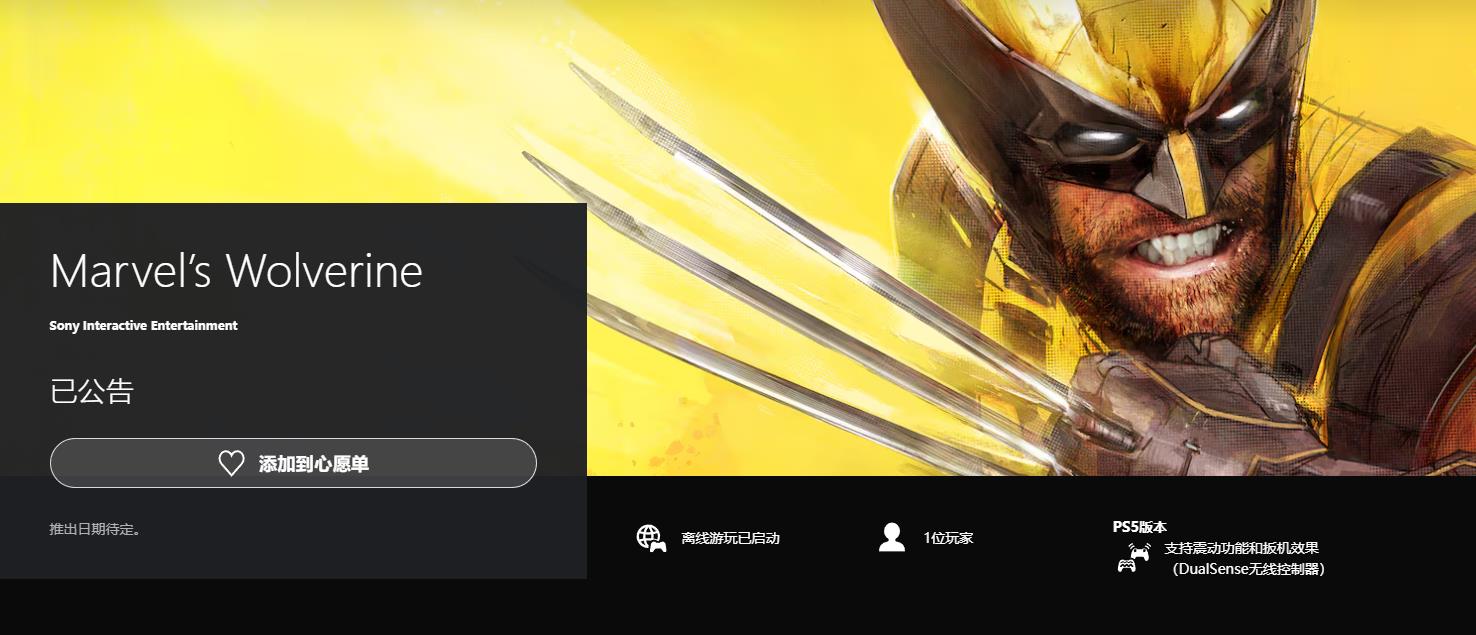 【明年秋发售!失眠组新作《漫威金刚狼》现已可加入愿望单】由失眠组(Insomniac Games)带来的新作《漫威金刚狼》现已在PS商店中支持“添加至愿望单”功能。本作将以全新视角诠释漫威经典角色。利爪、怒火、决心,金刚狼将尽其所能追寻过往真相,解开自己身份的谜团。据悉与失眠组之前的作品相比,这款游戏将会更加黑暗和残酷。《漫威金刚狼》预计会于2026年秋季在PS5平台上推出。