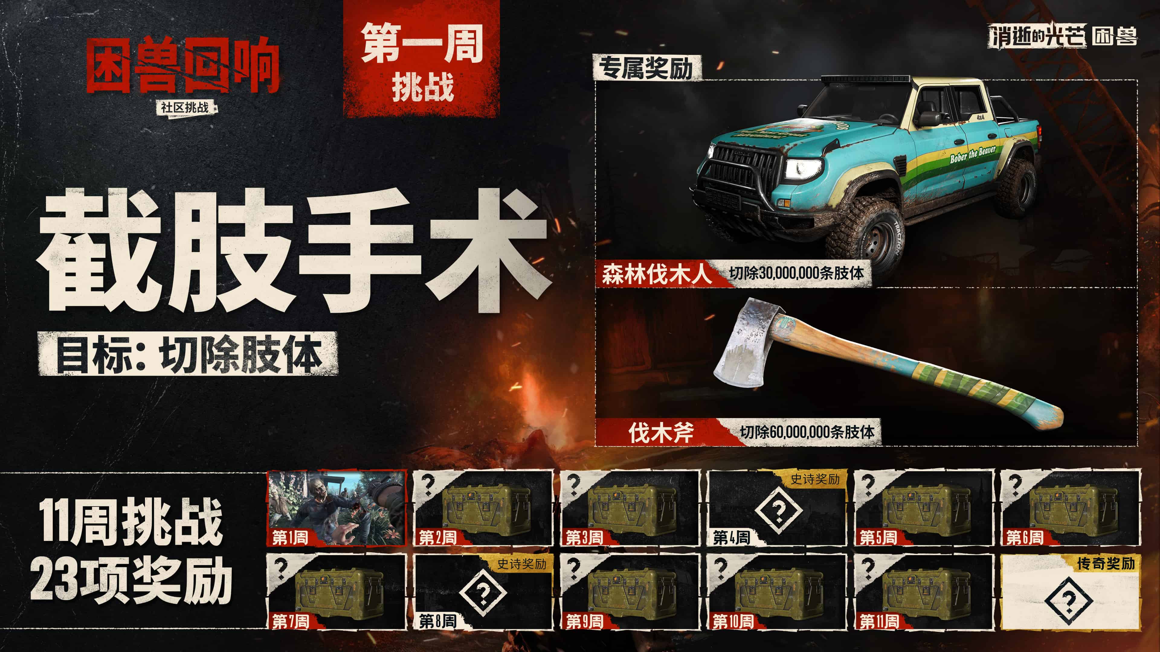 【《消逝的光芒:困兽》后续更新计划公开,新游戏+等内容即将到来】Techland近日公布了《消逝的光芒:困兽》的后续更新路线图。在接下来的11周,将有各种新内容伴随“困兽回响”社区挑战一同登场。其中包括:新游戏+、传奇等级、噩梦难度、《绝地求生》手游联动、光追选项(PC)、全新处决动画、视觉和体验优化等。此外,困兽回响第一周挑战现已开始,活动预计持续到10月23日,达成目标可获得专属奖励“森林伐木人”“伐木斧”。