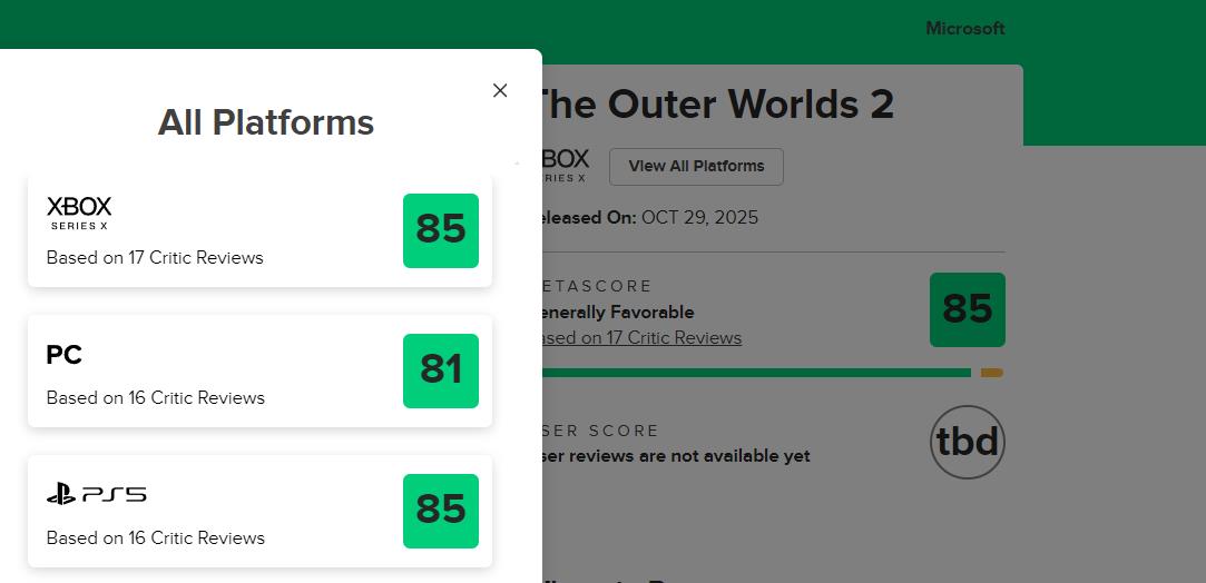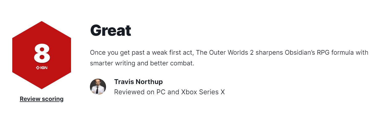 《天外世界2》MC媒体均分85,获IGN和GS双8分评价
