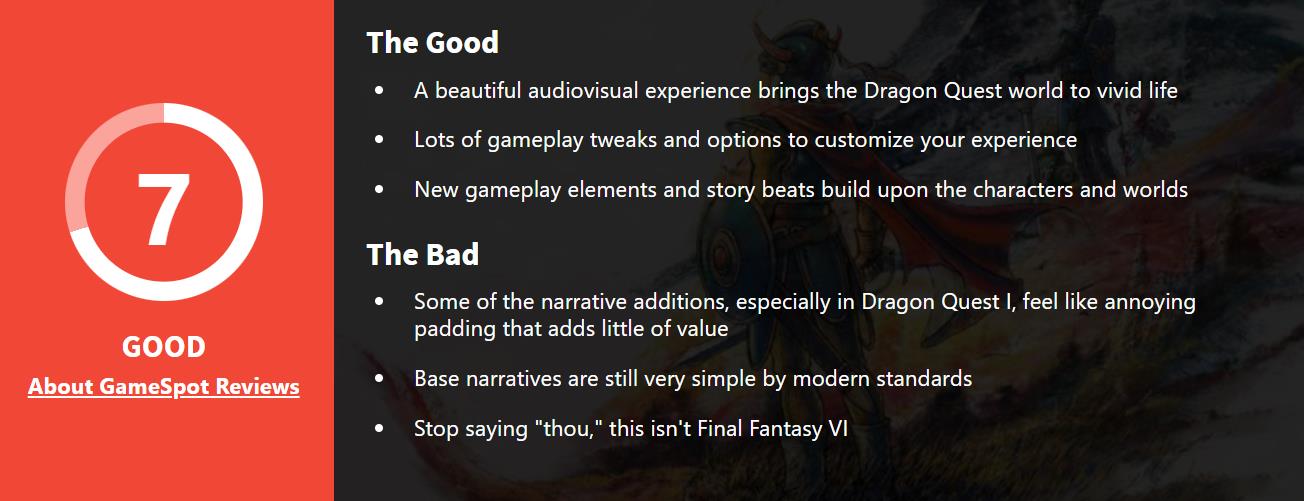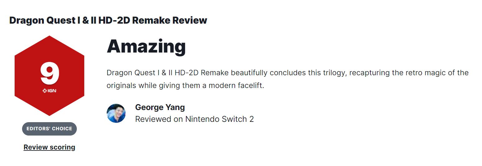 《勇者斗恶龙1&2:HD-2D重制版》MC均分86,获IGN9/GS7分评价