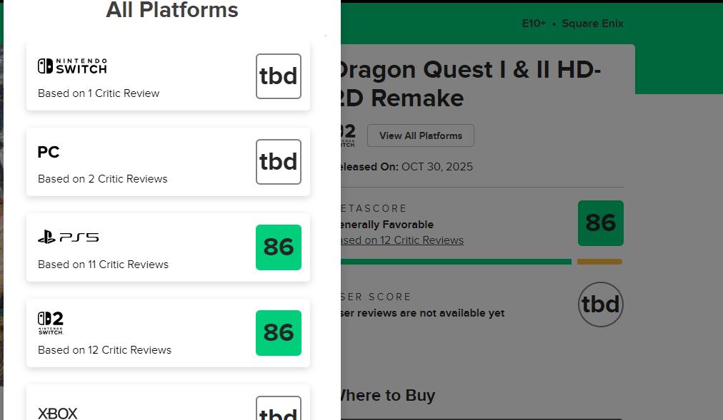 【《勇者斗恶龙1&2:HD-2D重制版》MC均分86,获IGN9/GS7分评价】由SE所带来的经典角色扮演游戏《勇者斗恶龙1&2:HD-2D重制版》全球媒体评测现已解禁。目前本作在MC上PS5版均分86(暂收录11家媒体),NS2版均分86(暂由12家媒体给出)。部分媒体分数如下: