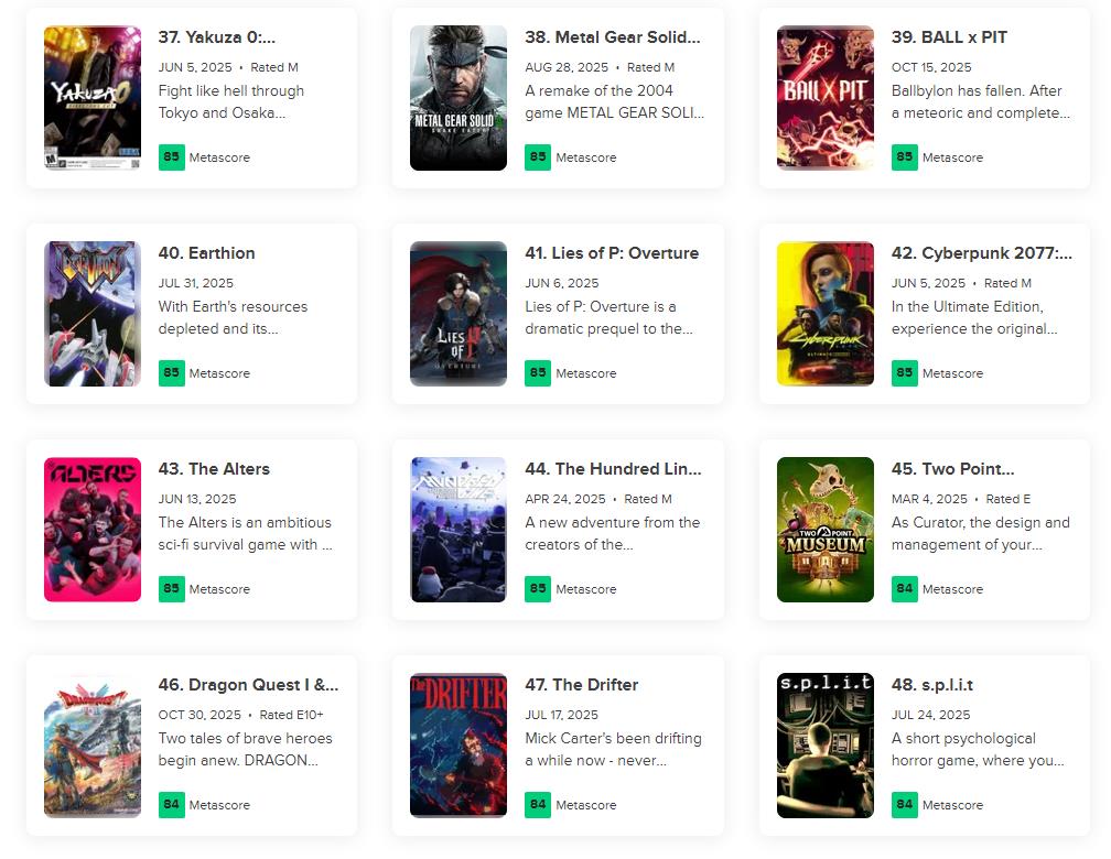TheGamer表示,虽然今年老游戏不少,但2A与独立游戏也有所突破。比如颇受好评的《光与影:33号远征队》以及《顶峰》《Schedule I》《R.E.P.O.》等作品都有着不错的表现。