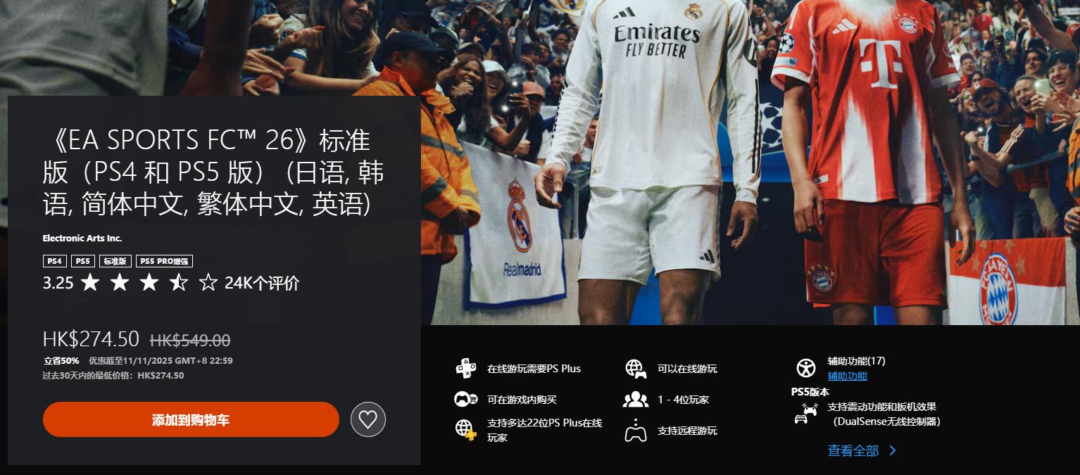 《EA SPORTS FC 26》274.5HKD(新史低)