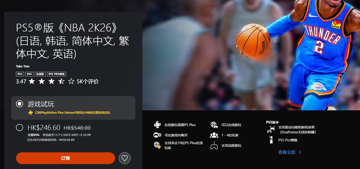 《NBA 2K26》246.6HKD(新史低)