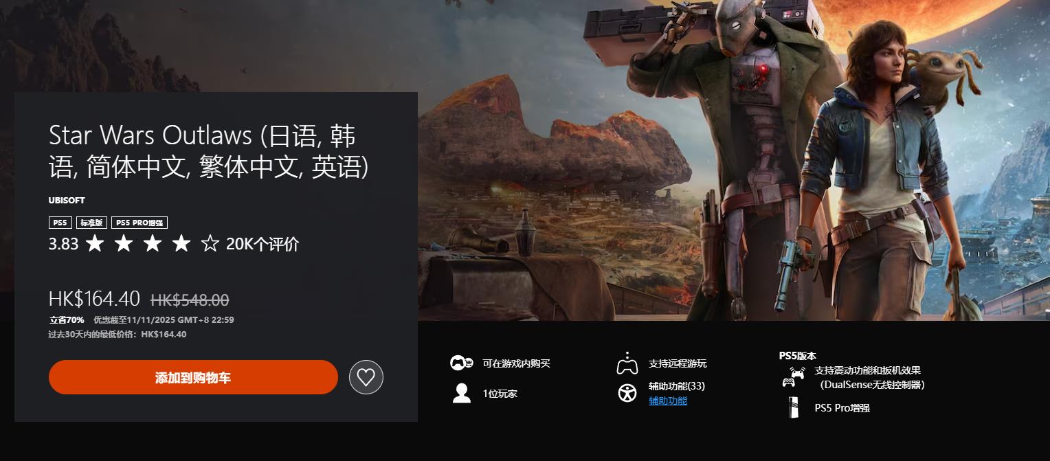 《星球大战:法外狂徒》164.4HKD(新史低)