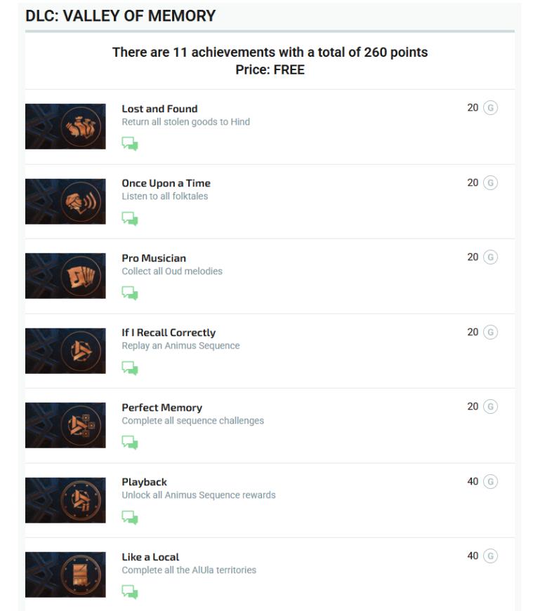 《刺客信条:幻景》免费DLC“回忆山谷”新增11项成就/奖杯