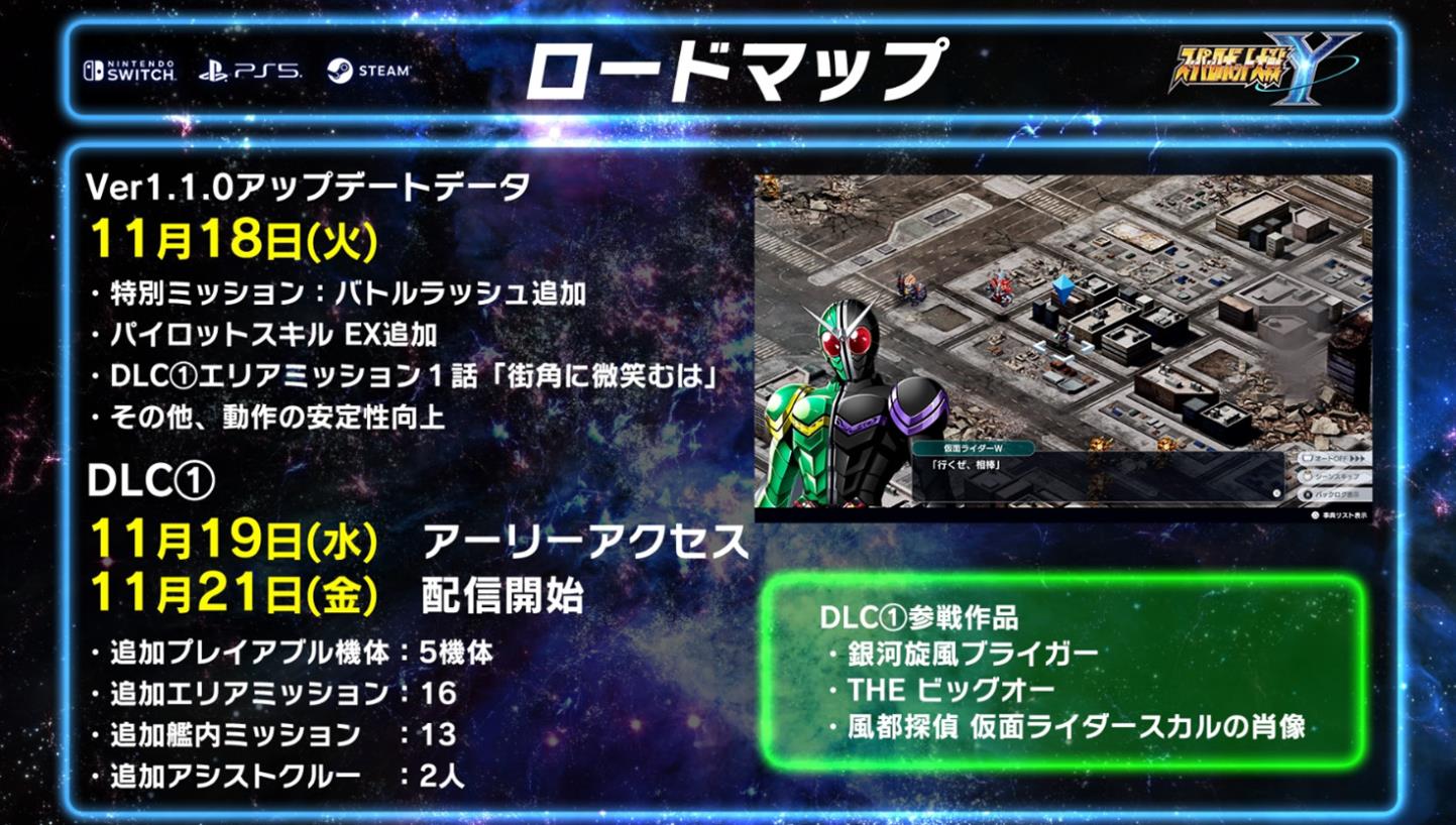 《超级机器人大战Y》DLC第一弹将于11月21日上线,1.1.0更新将于11月18日推出