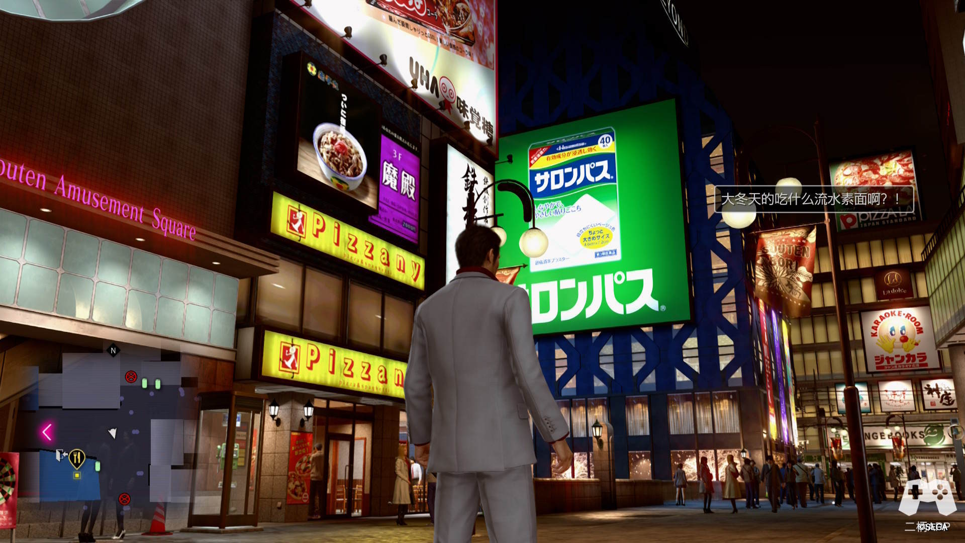 其实,《人中之龙》系列的正传从7开始就已经有专门的官方简中支持,如今这种优秀品质的翻译,也是岁月磨砺下经验积累的结果。《极2》的简中翻译有多优秀,除了事无巨细,将游戏各个角落的文本都做了简中适配外,含义准确且贴合当下语言习惯,又切中原文所蕴含隐喻的翻译,确实让整个游戏体验上升了一个台阶。语气和用词都贴合原作人物设定,无生硬直译感。