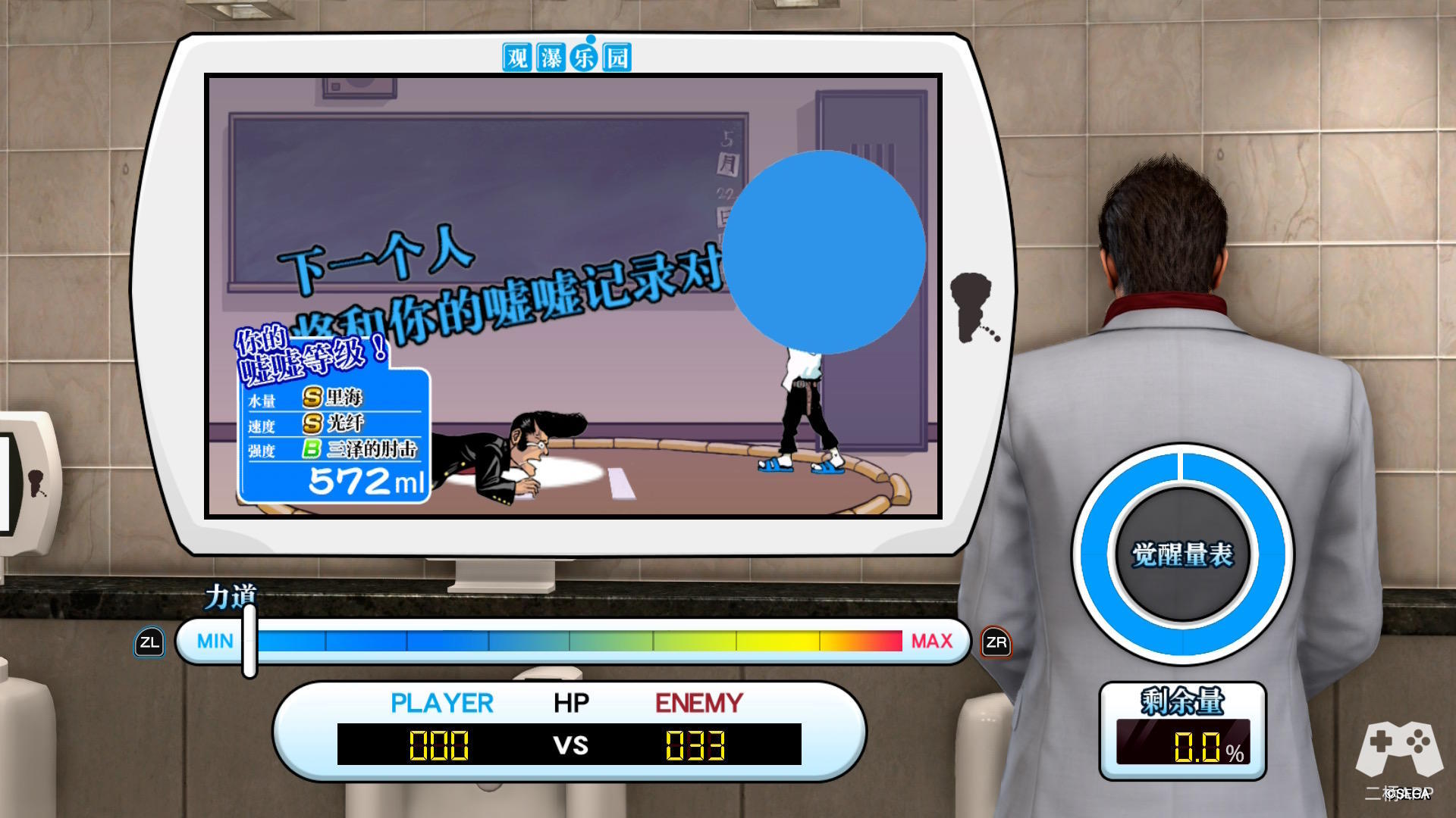 游戏的续航表现也进入了第三方大型作品的优秀梯队,在掌机模式下,从满电量开始以常规亮度和音量游玩1小时候,剩余电量依旧有64%,同时机身温度控制也比较优秀,没有出现过热或明显降频问题。游戏除了支持握持和主机两个模式外,对于Joy-Con分体操作也做了支持,可以将掌机屏幕立在桌面上游玩。稍显遗憾的是,内置的小游戏不能使用单个Joy-Con进行操作,来完成一对Joy-Con就可以双人对战的设想。本作甚至还对Joy-Con和Pro手柄的精细震动做了适配,这一点在使用Pro手柄进行游戏时更为明显。总的来说,在各个场景下,玩家化身堂岛之龙的过程都是顺畅无阻。