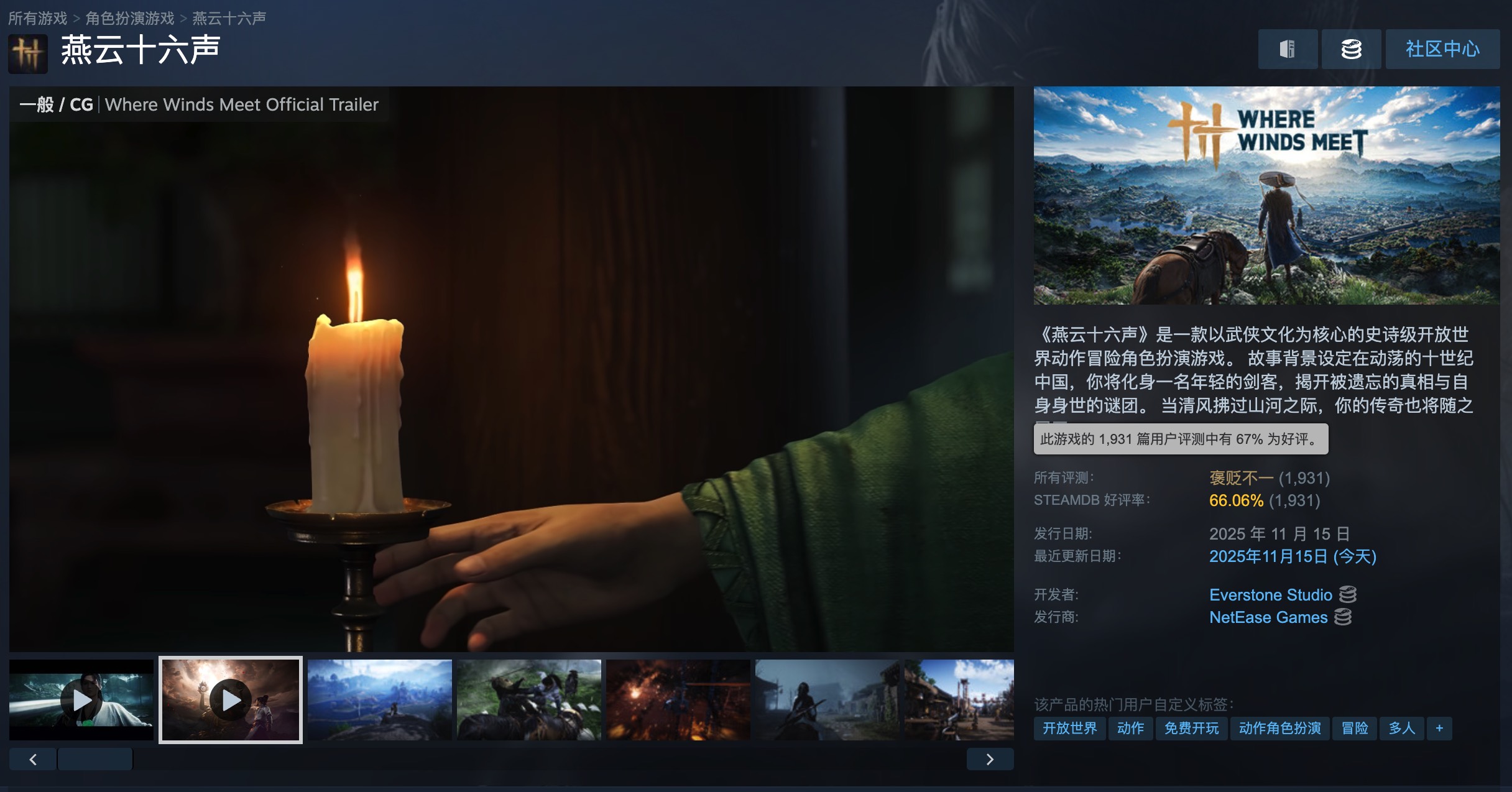 《燕云十六声》Steam评价“褒贬不一”,游戏尚需优化