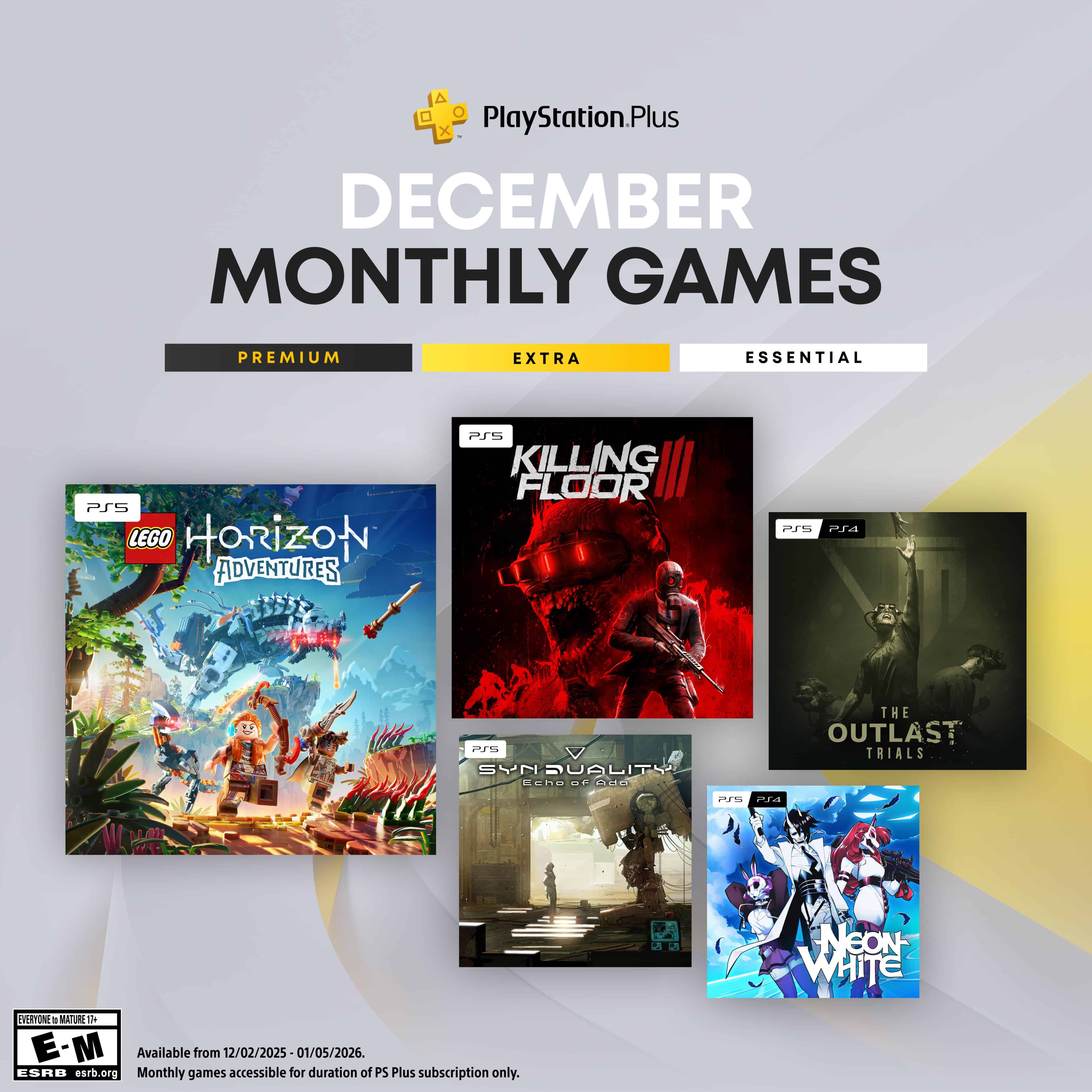 【五款游戏即将到来!12月份PS+会免游戏公布】PS欧美地区商店2025年12月份PS+会免游戏(1档)现已公布,具体名单如下: PS5《乐高地平线大冒险》 PS5《杀戮空间3》 PS4/PS5《逃生:试炼》 PS5《奇异贤伴:爱达之歌》 PS4/PS5《Neon White》 以上游戏将于12月2日开始领取。
