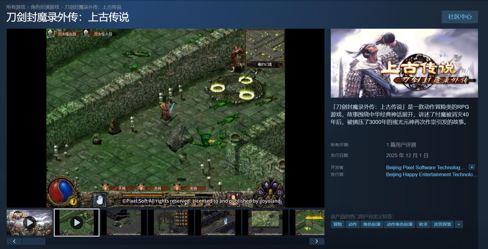 【国产经典动作冒险RPG《刀剑封魔录外传:上古传说》今日登录Steam】国产经典动作冒险RPG《刀剑封魔录外传:上古传说》已于今日登录Steam平台。本作最初于2003年推出,其内容围绕中华经典神话展开,讲述了纣魔被消灭40年后,被镇压了3000年的蚩尤元神再次作祟引发的故事。需要注意,该作为原版移植,并非重制版游戏。《刀剑封魔录外传:上古传说》Steam上售价25元,12月8日前可以首发优惠价15元入手。