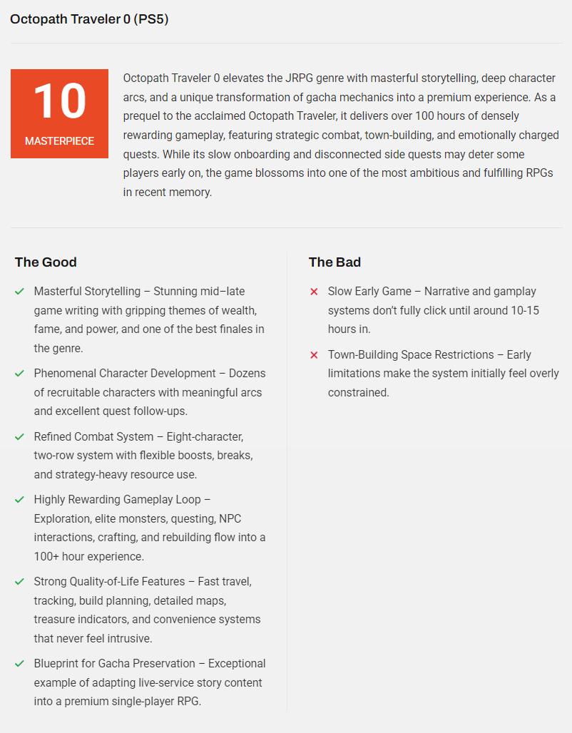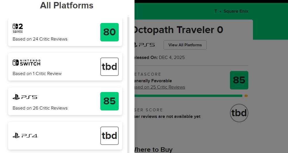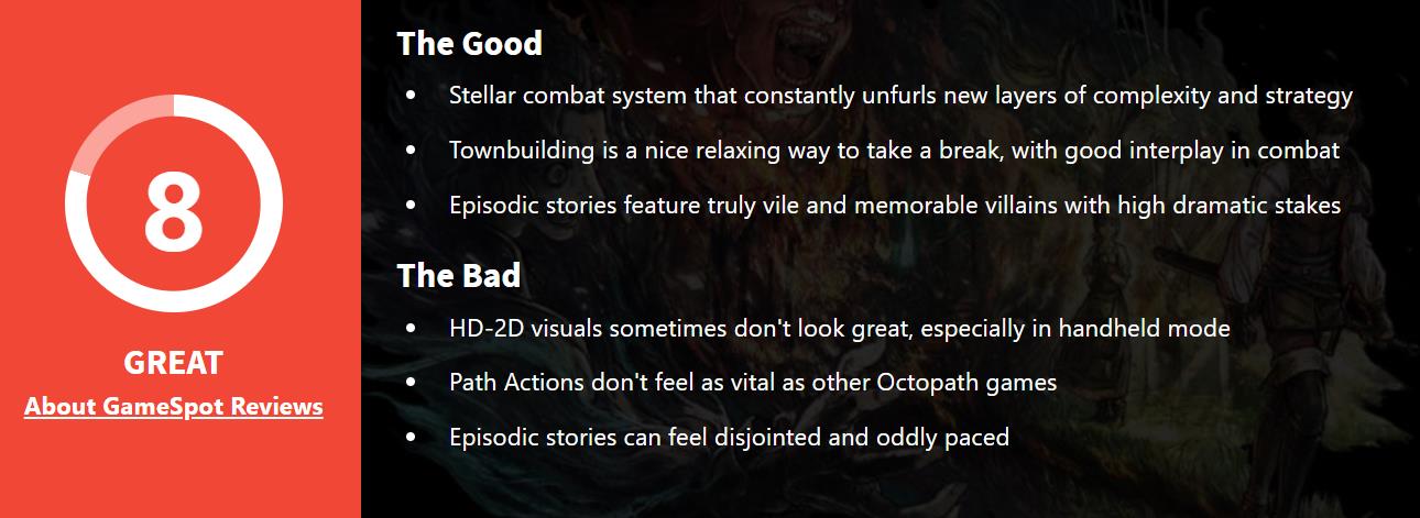 《八方旅人0》媒体评测解禁:MC开分85,获GS 8分评价