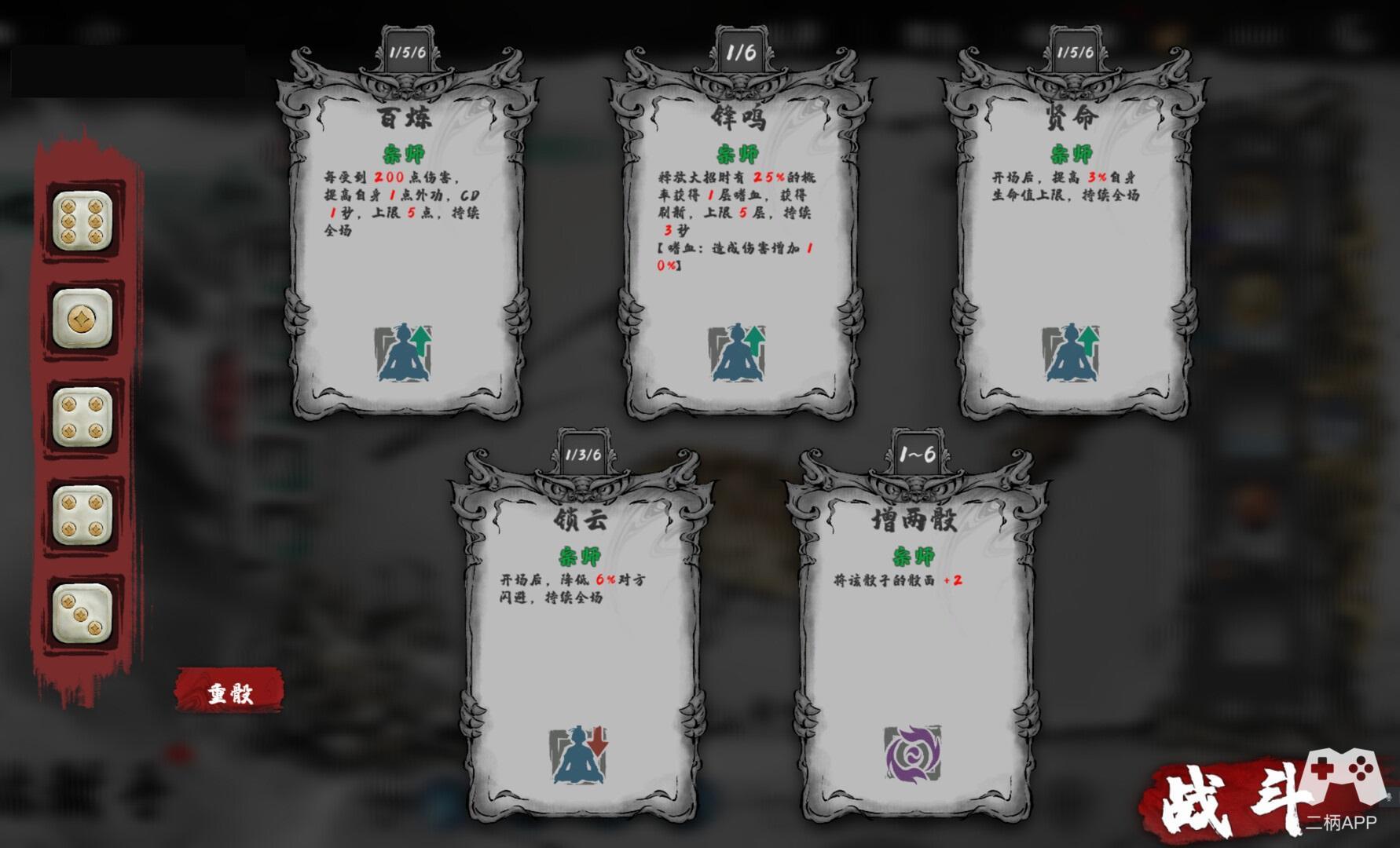 每轮开局,玩家拥有2个基础骰子,最多可升级至5个。战斗前,投掷骰子获得随机点数,将特定点数的骰子拖拽至天命卡上“喂”给它,即可激活此卡。本次激活的天命仅在当前战斗生效,使得每一场对决前的准备都充满策略博弈与随机应变之趣。在实力相当的对局中,天命操作成了决胜中关键的一环。