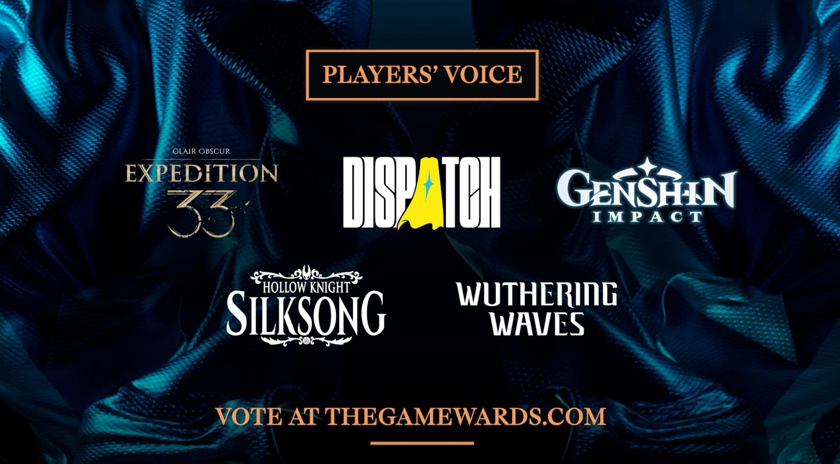 【TGA“玩家之声”终极五强揭晓!第三轮投票现已开启】TGA“玩家之声”终极五强名单现已揭晓,入围作品包括: 《光与影:33号远征队》 《超英派遣中心》 《原神》 《空洞骑士:丝之歌》 《鸣潮》 该奖项由玩家全权投票决出,目前第三轮(最终轮)投票已正式开放。最终结果将于北京时间12月12日举行的TGA颁奖典礼上公布。