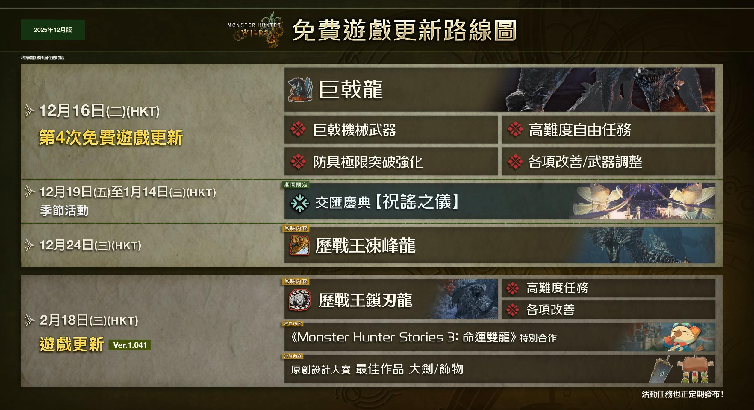 【《怪物猎人:荒野》第四次免费更新内容介绍,下次更新2月18日推出】Capcom今日对预计于12月16日上线的《怪物猎人:荒野》第四次免费更新内容进行了介绍,要点如下: