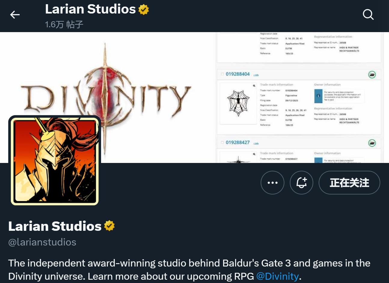 TGA神秘雕像此前引起了玩家们的广泛猜测,不过最终因商标曝光而提前泄露了内容。值得一提的是,拉瑞安官方之后将该商标曝光图设为了社交帐号的背景图……新作《神界》是该系列第六部主线作品,官方在介绍中写道:“诸神缄默不言。绿维珑遍体鳞伤。新生势力悄然崛起!”本作由《博德之门3》原班人马打造,据悉游戏拥有着空前的规模,目前细节与发售日期等信息尚未揭晓。