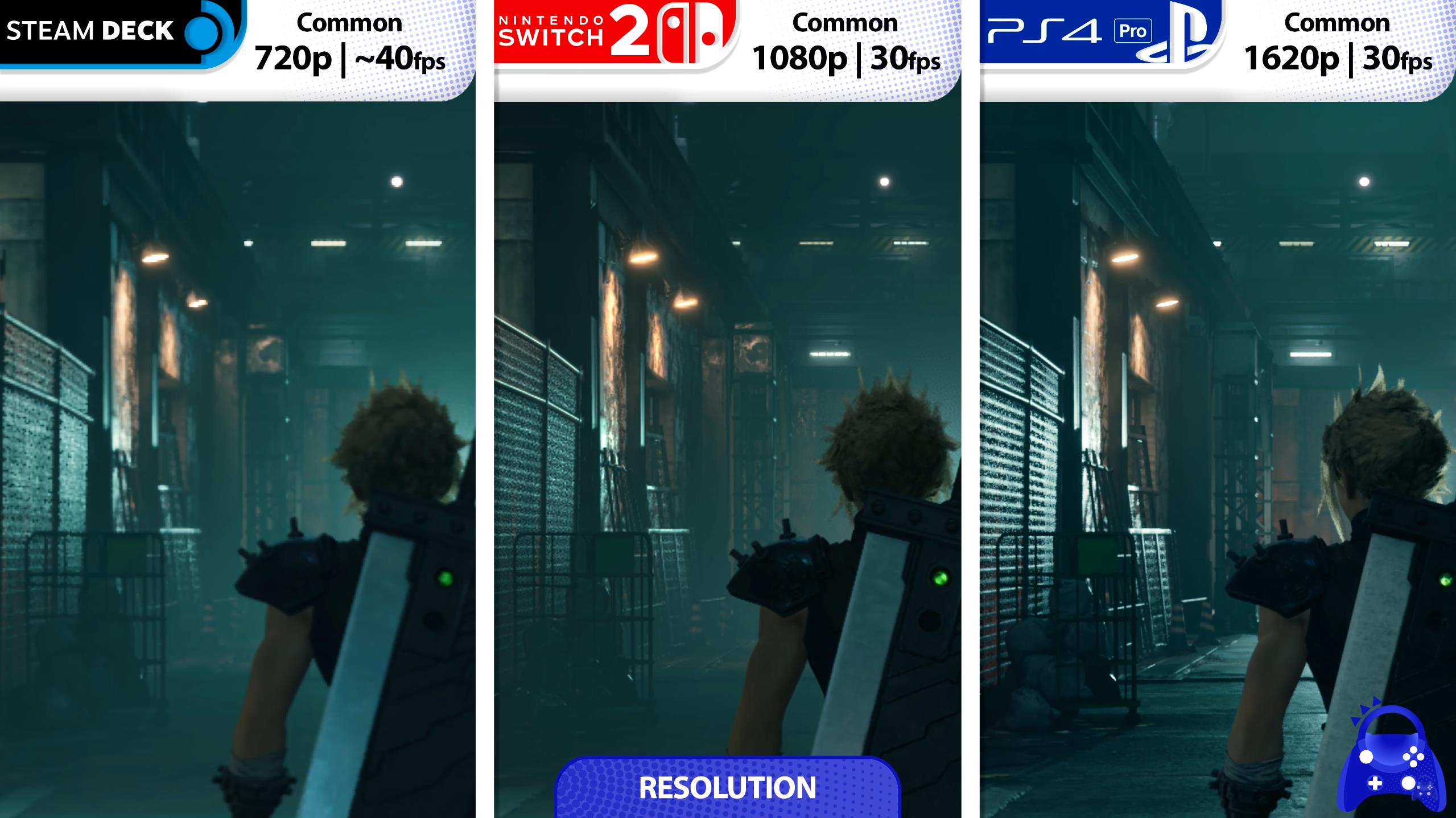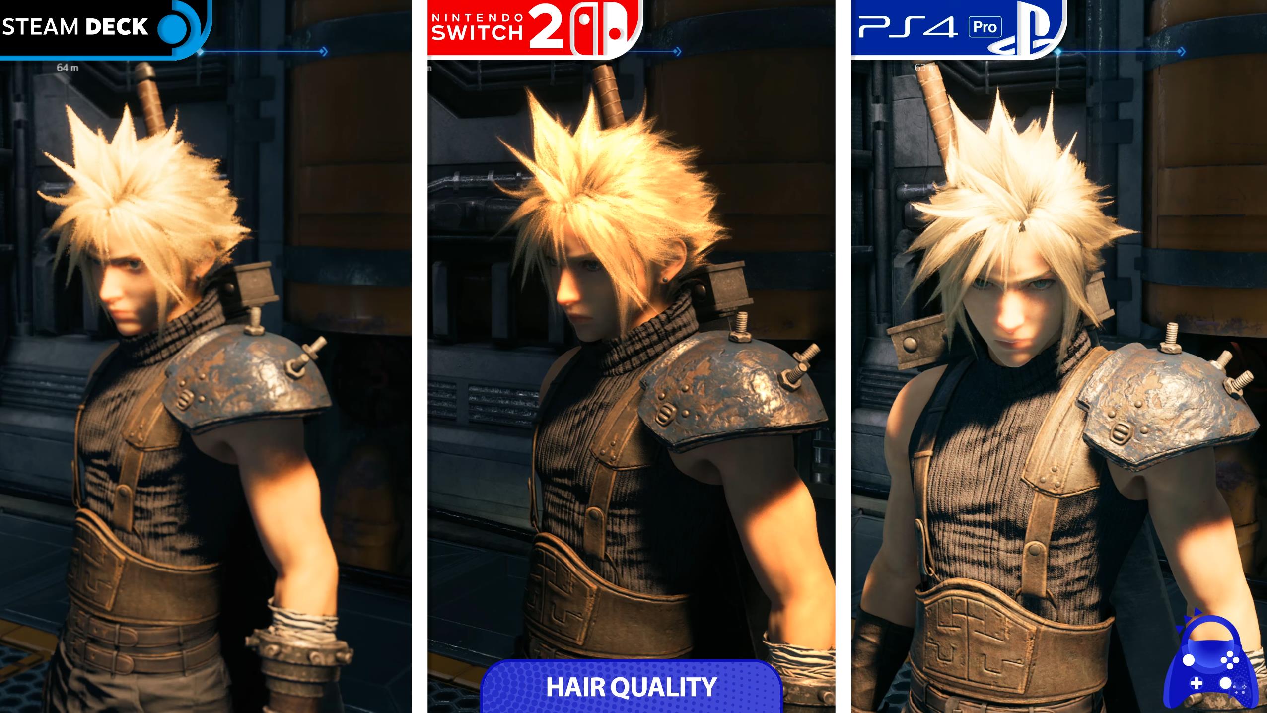 【NS2版《最终幻想7:重制版》性能对比:1080p/30帧,光影优于PS4 Pro】NS2版《最终幻想7:重制版》试玩Demo已于近日上线,技术评测频道ElAnalistaDeBits分享了本作在NS2、Steam Deck、PS4 Pro平台上的画质对比报告。